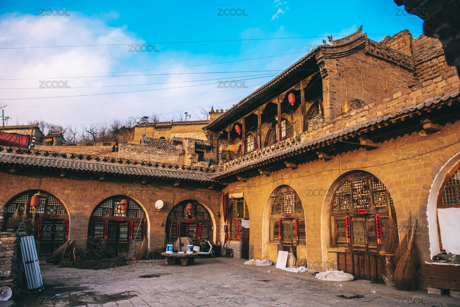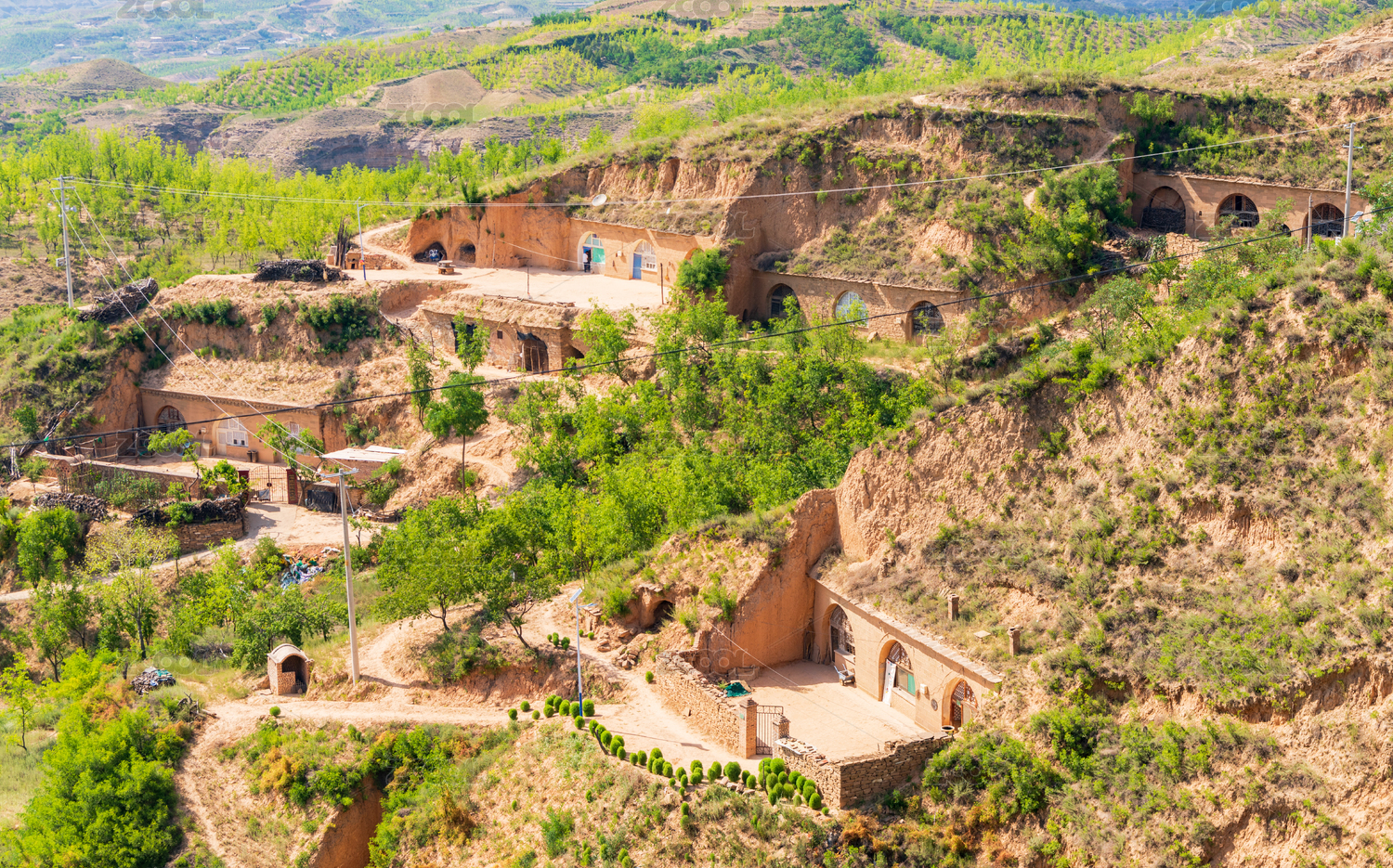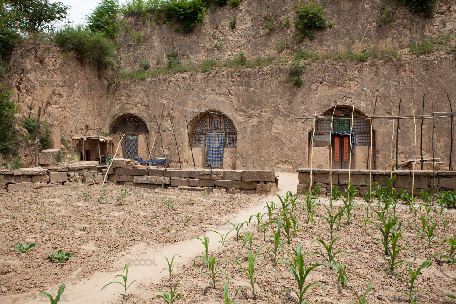 黃土高原窯洞民居小院,山西省臨縣李家山村