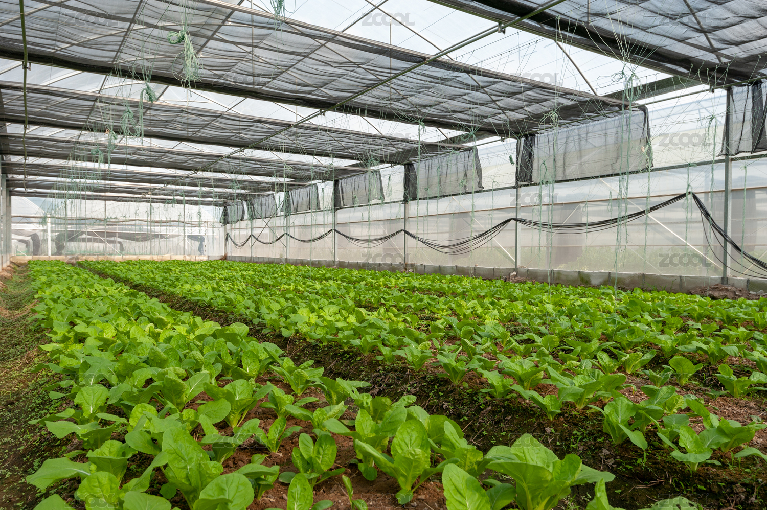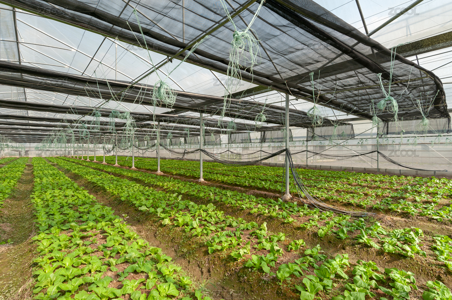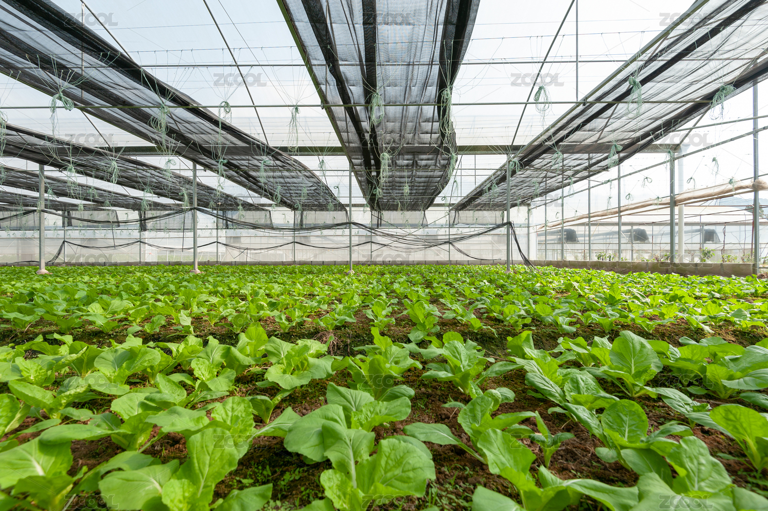 現(xiàn)代化蔬菜大棚里種植的有機(jī)蔬菜