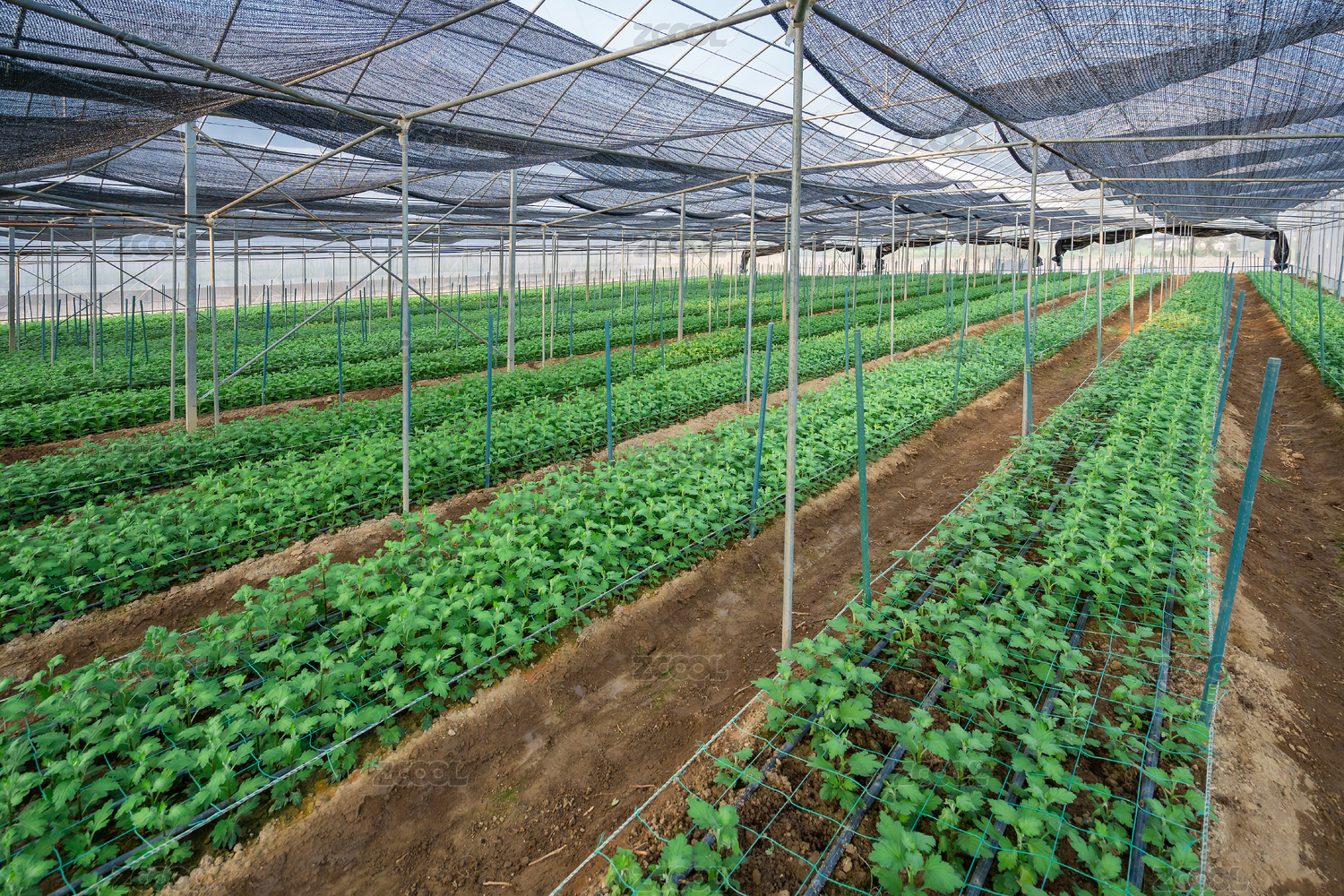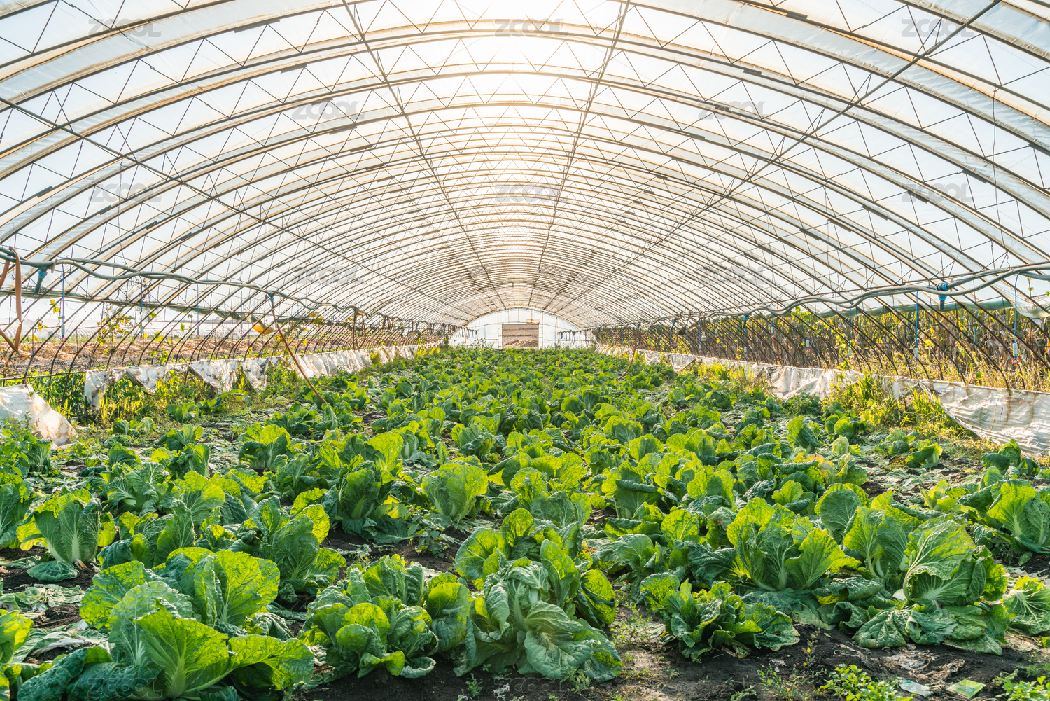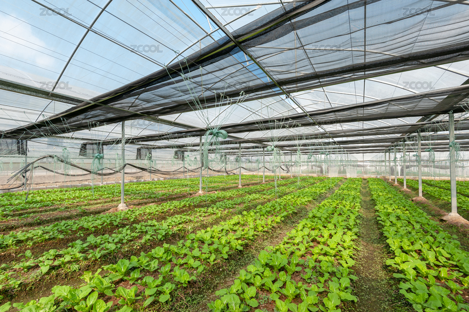 現(xiàn)代化蔬菜大棚里種植的有機(jī)蔬菜