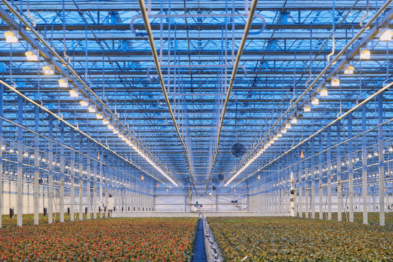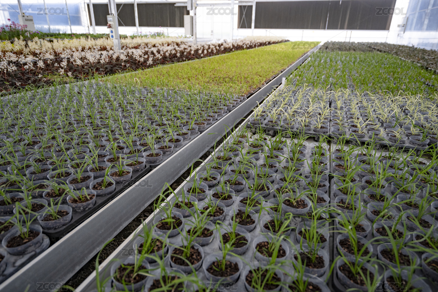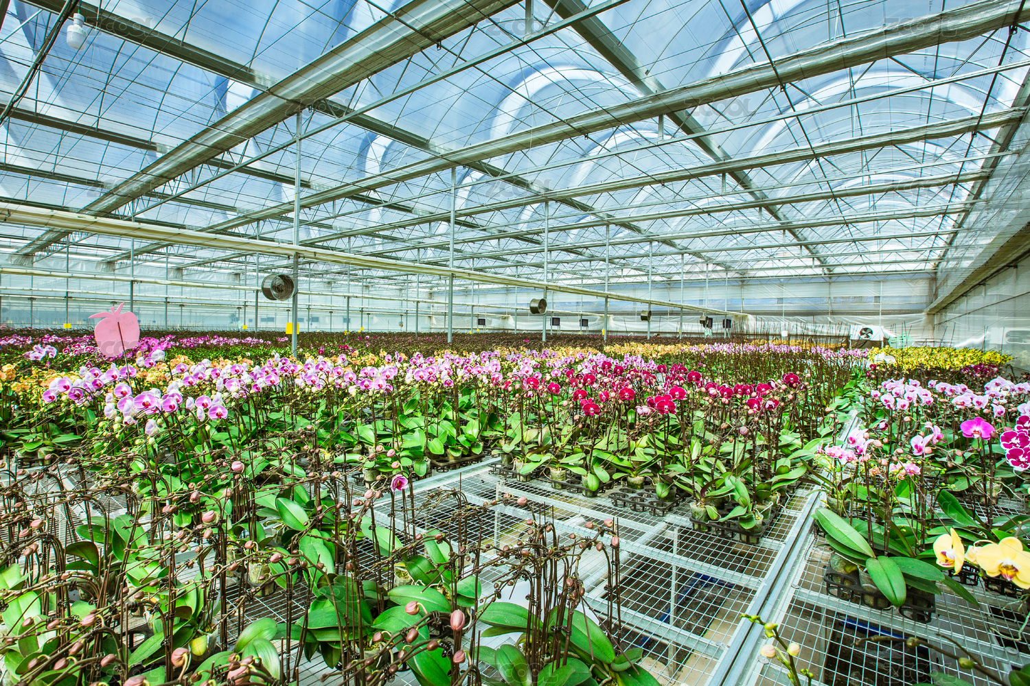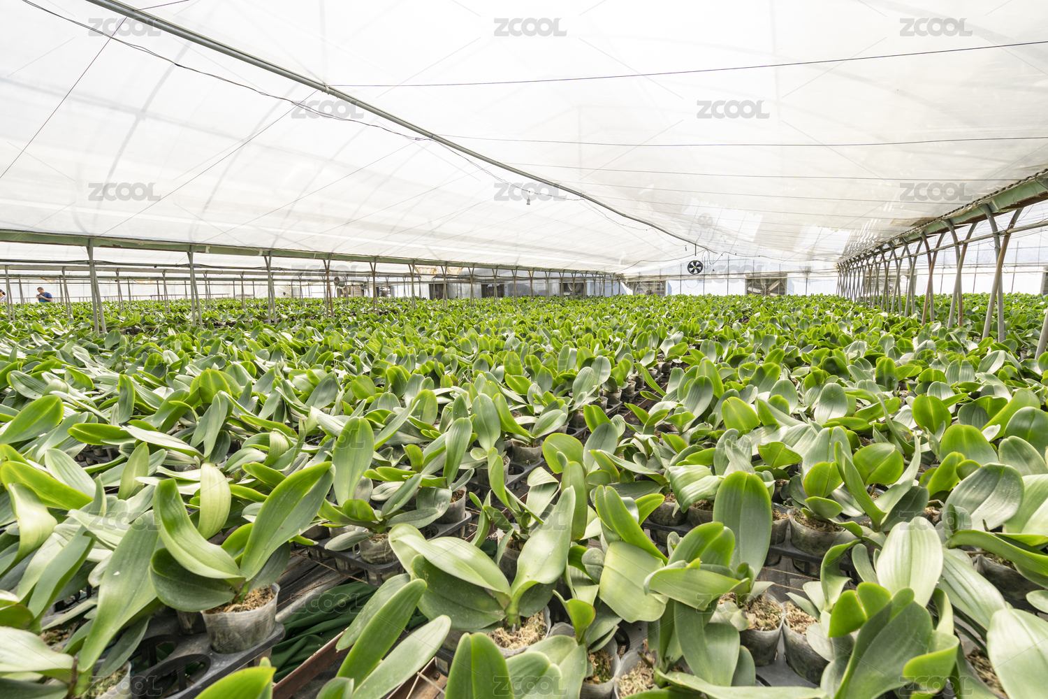 標(biāo)準(zhǔn)化鋼架大棚內(nèi)種植的蘭花小苗