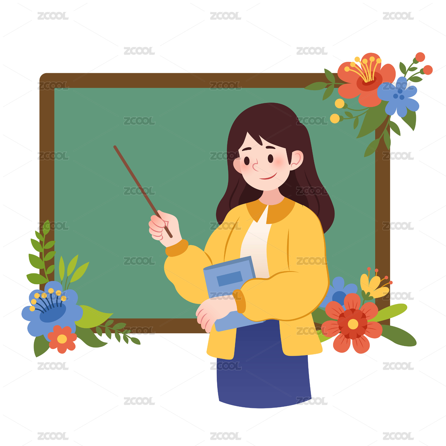 扁平風(fēng)課堂手拿教鞭上課的女老師