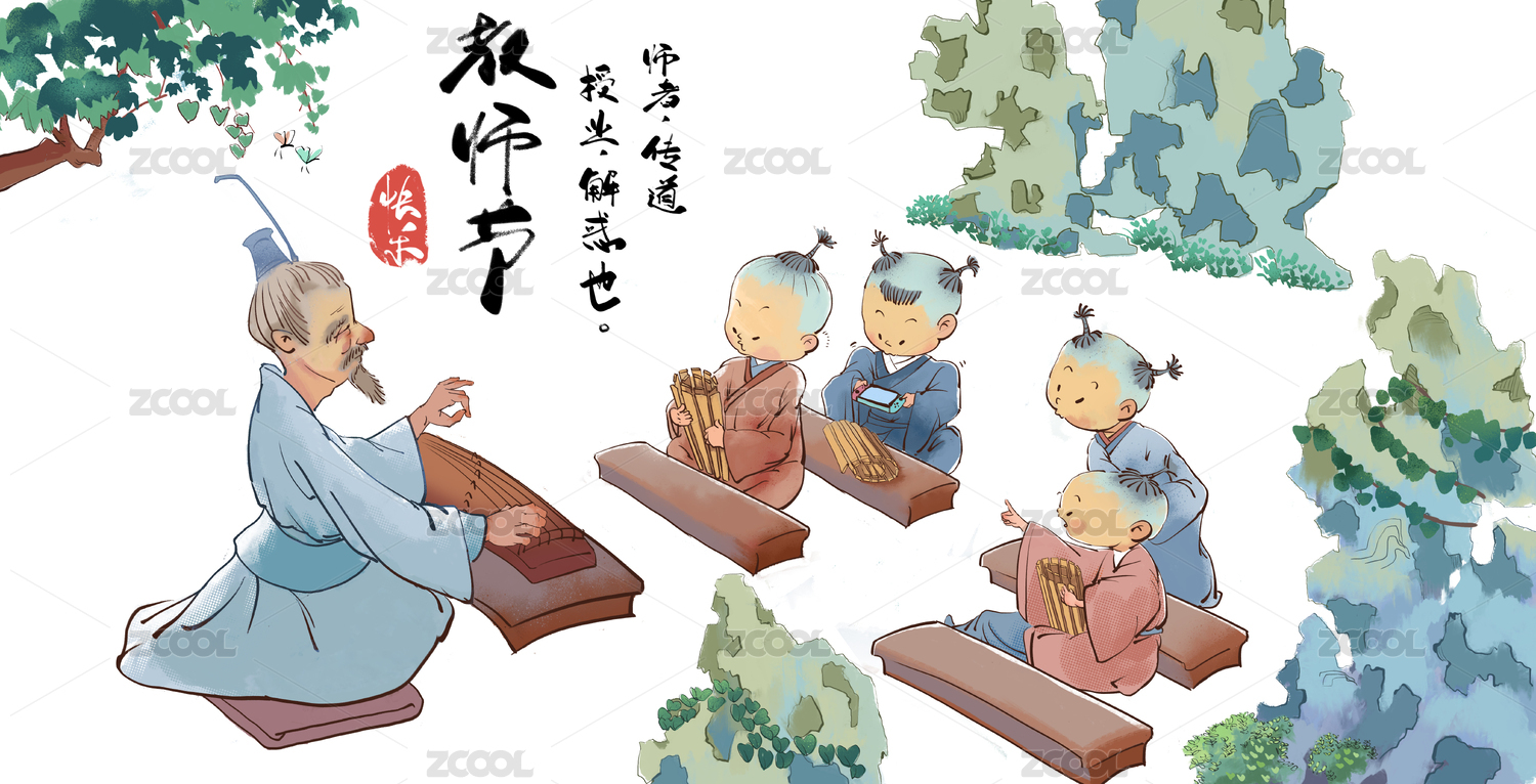 老師課堂教授樂器兒童淘氣嬉戲教師節(jié)海報