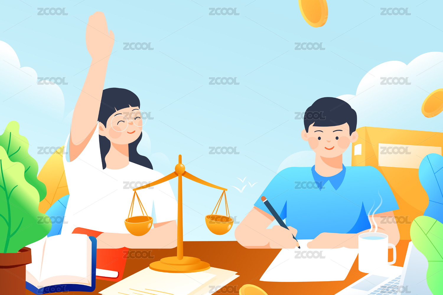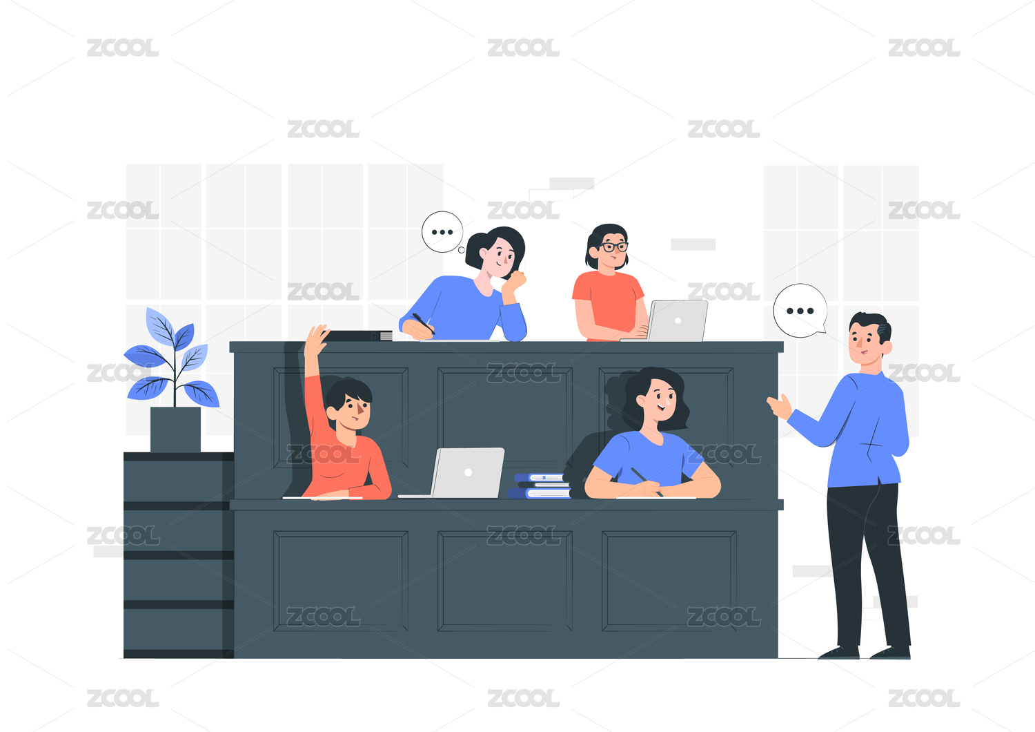 卡通課堂舉手學(xué)生