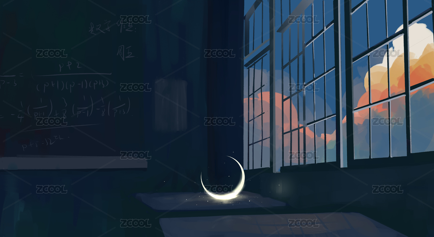 教室課堂黑板老師講課小課堂開課卡通插畫
