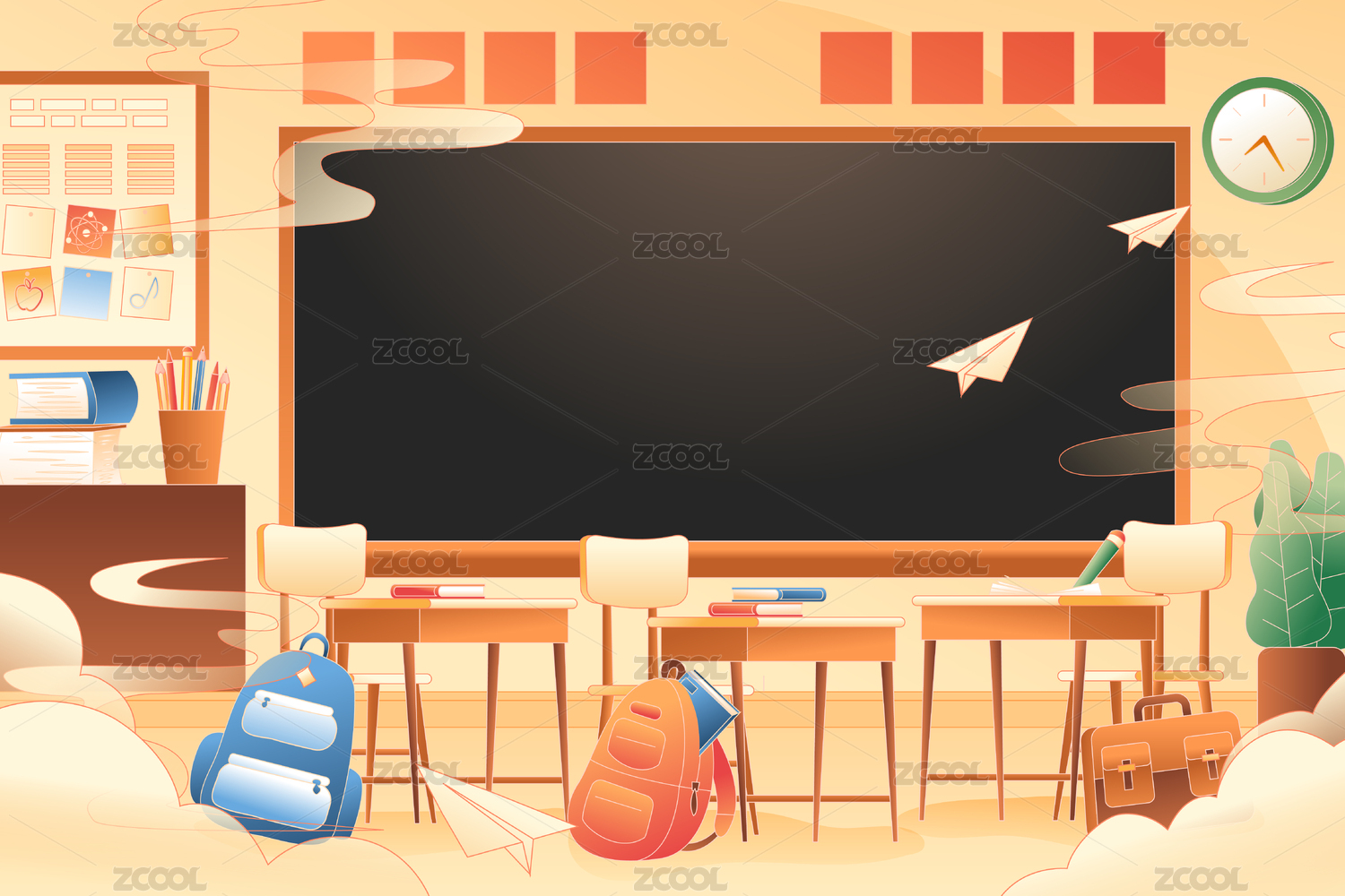開學(xué)季課堂矢量插畫背景