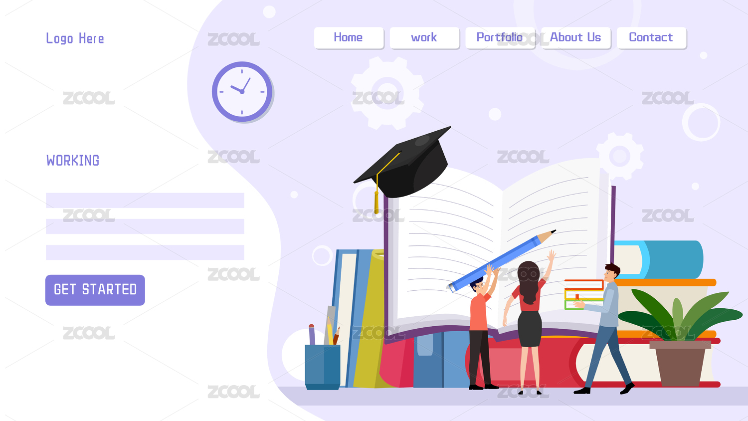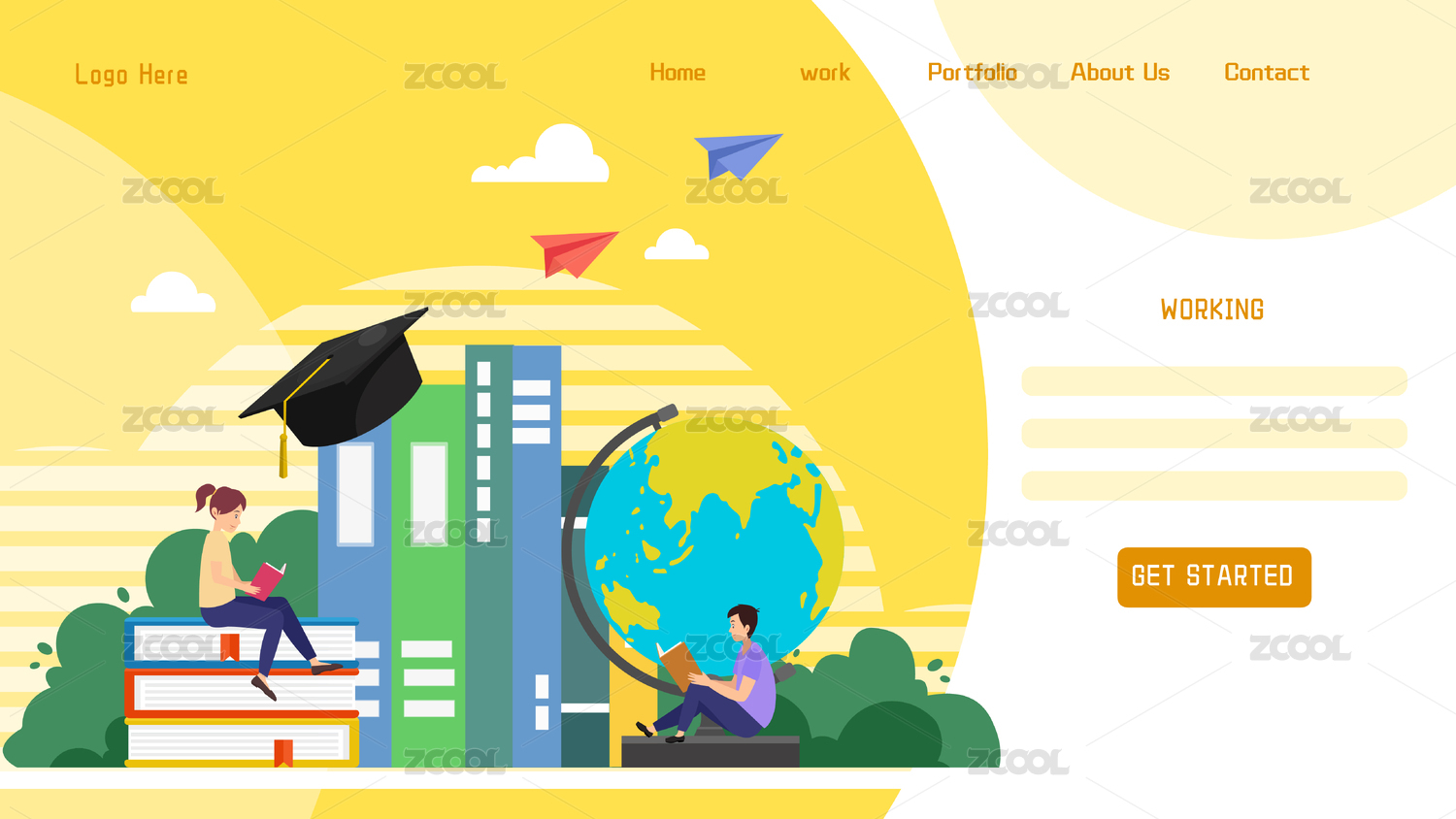 學(xué)生課堂學(xué)習(xí)辦公教育網(wǎng)站模板設(shè)矢量圖