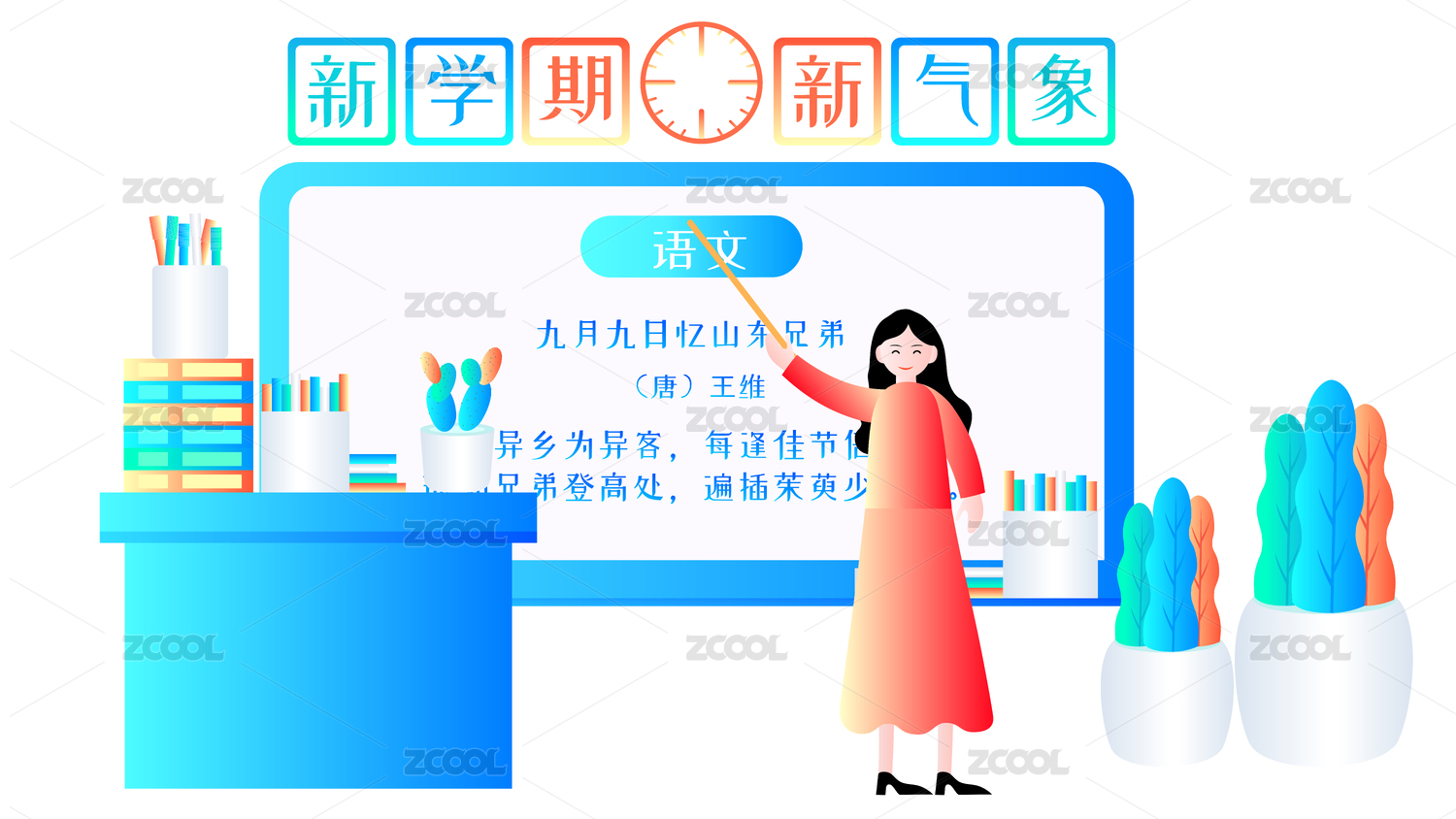 語文課堂簡約炫彩科技風(fēng)扁平插畫