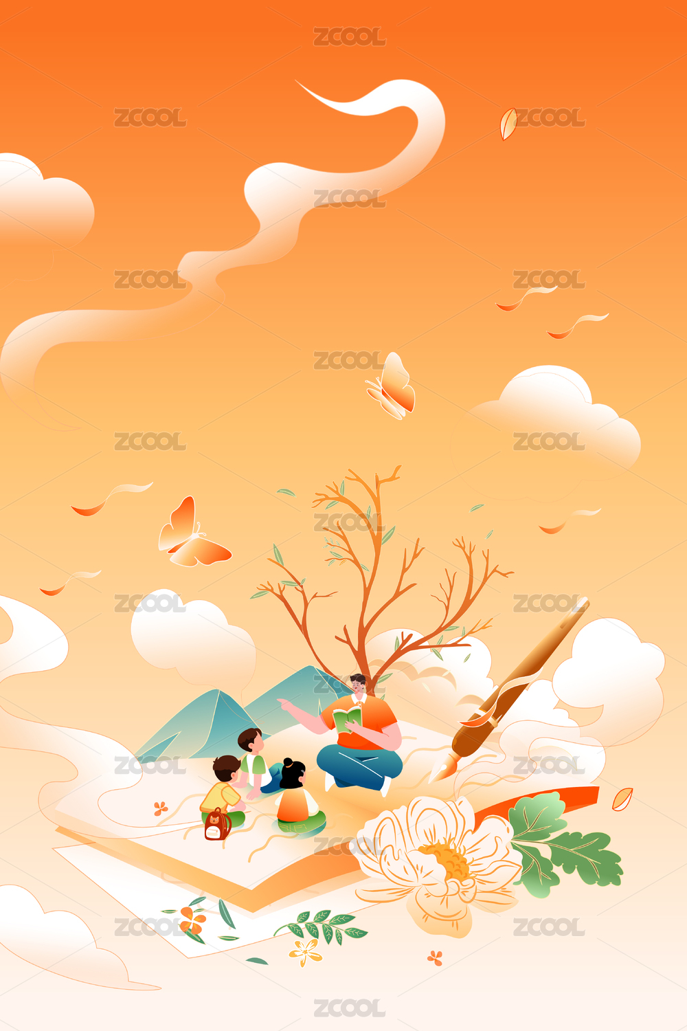 扁平風(fēng)幼兒園老師課堂講故事幼教繪本讀書