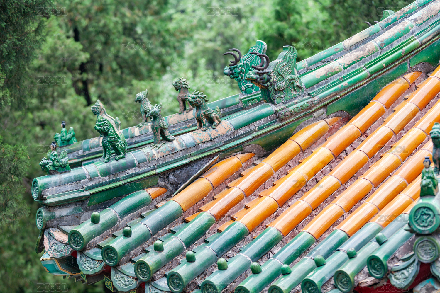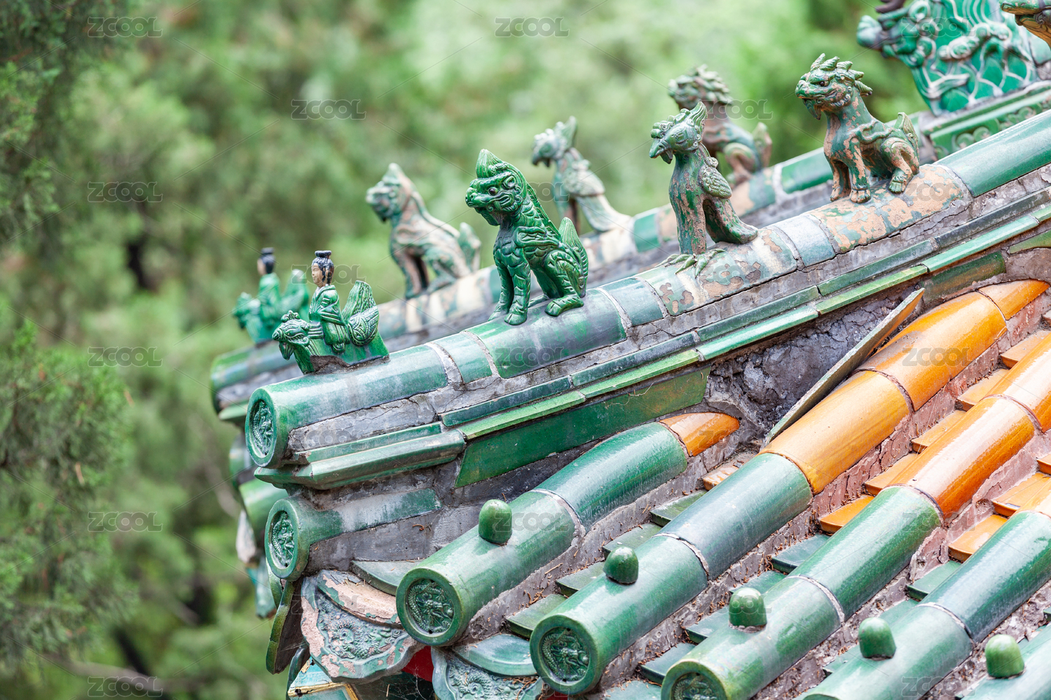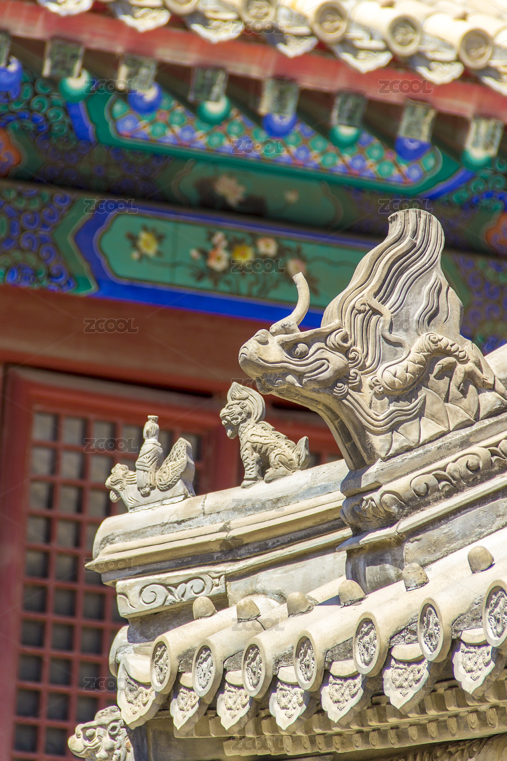 中國北京頤和園中古建筑上的屋脊獸