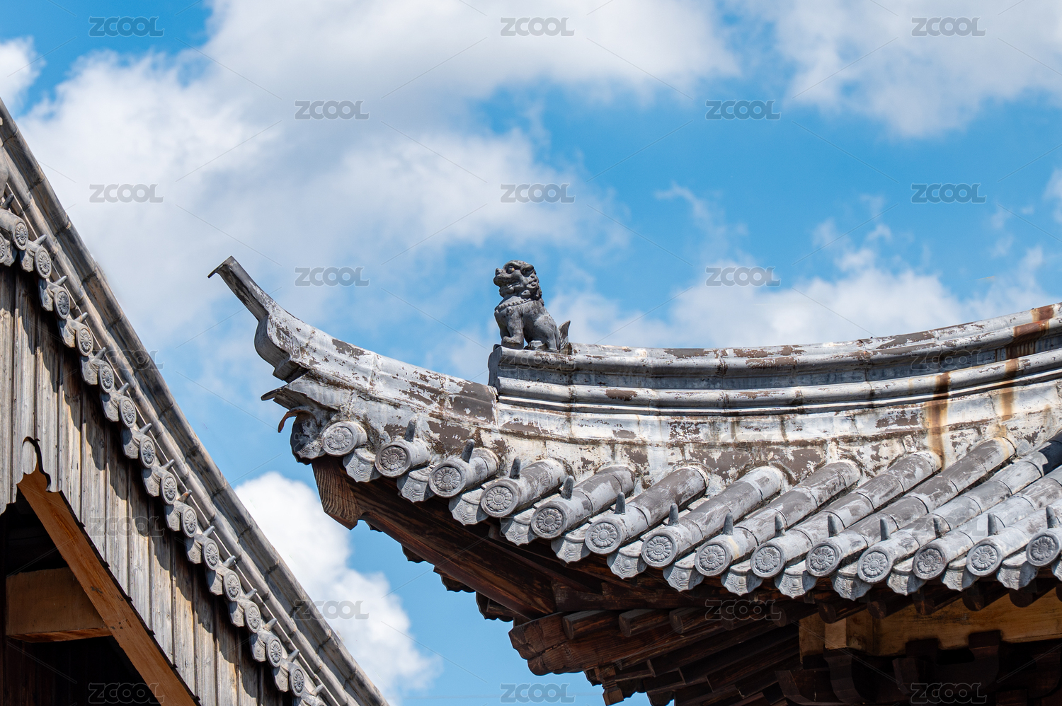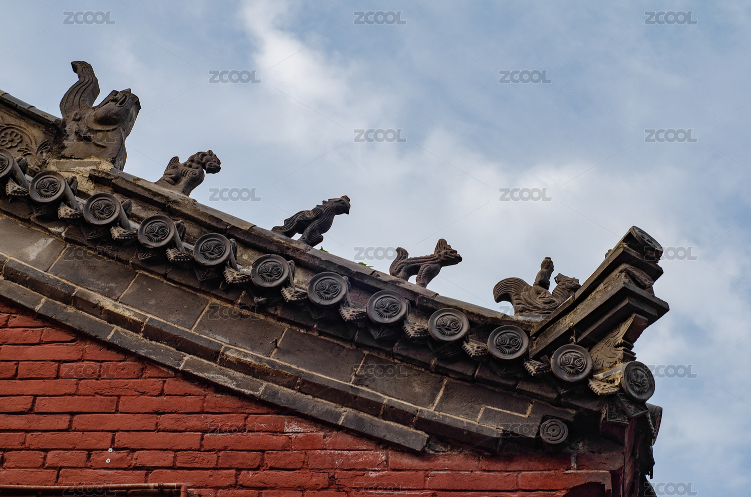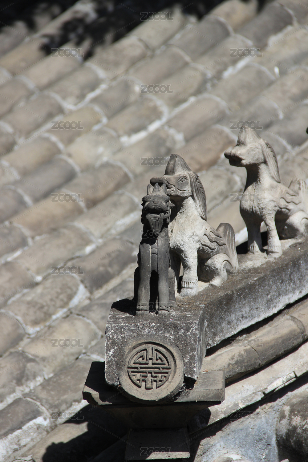 中國山東淄博周村古商城古建筑上的屋脊獸