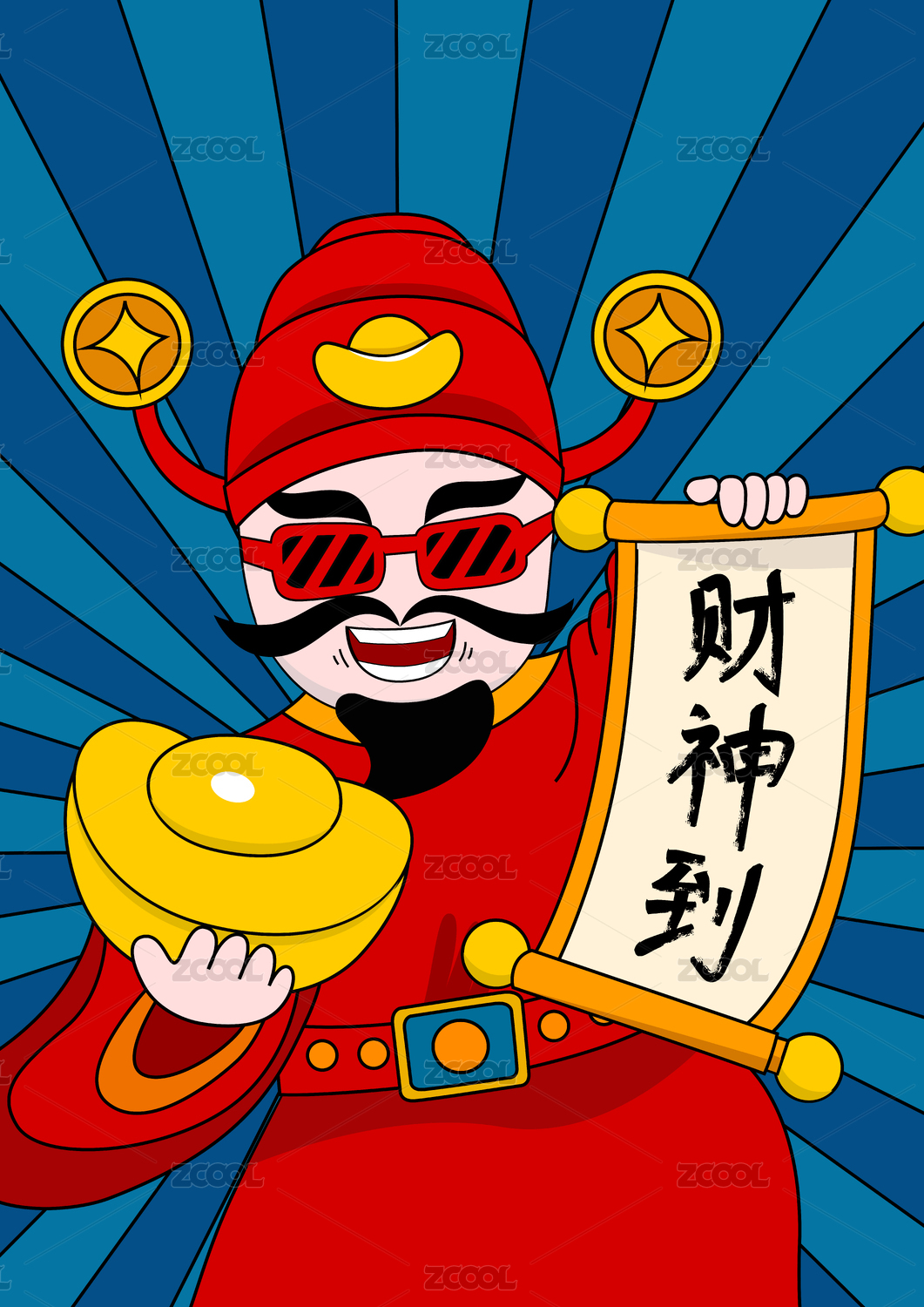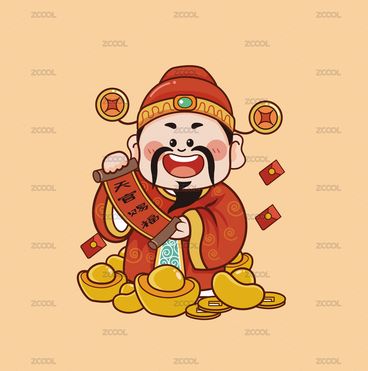 財(cái)神爺卡通矢量吉祥物