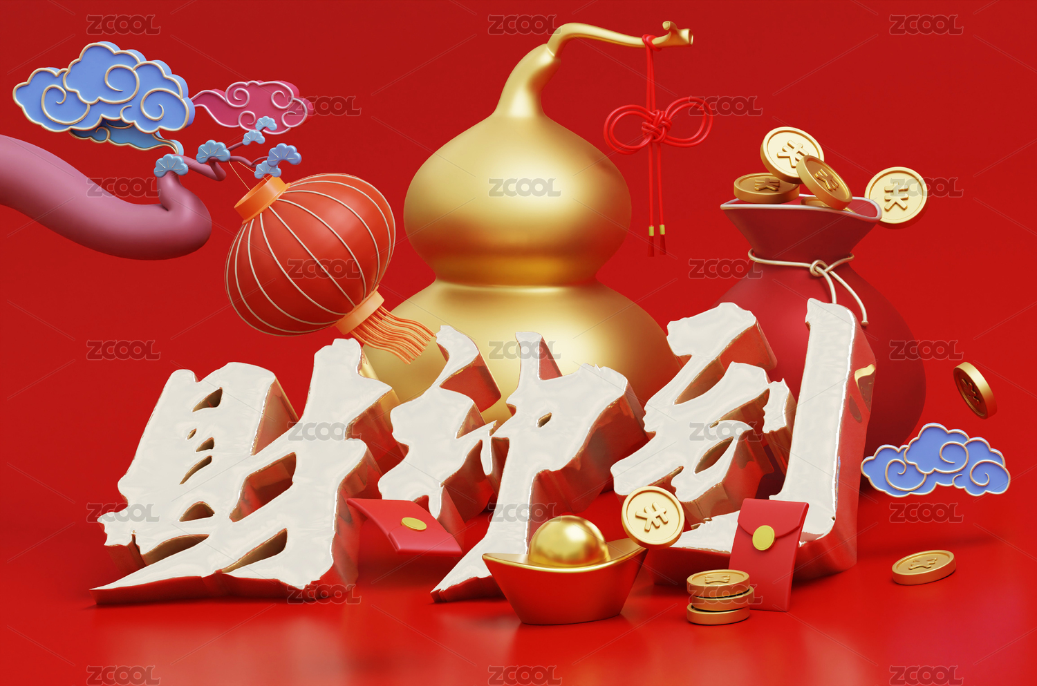 3D國(guó)潮節(jié)日財(cái)神到插畫海報(bào)設(shè)計(jì)
