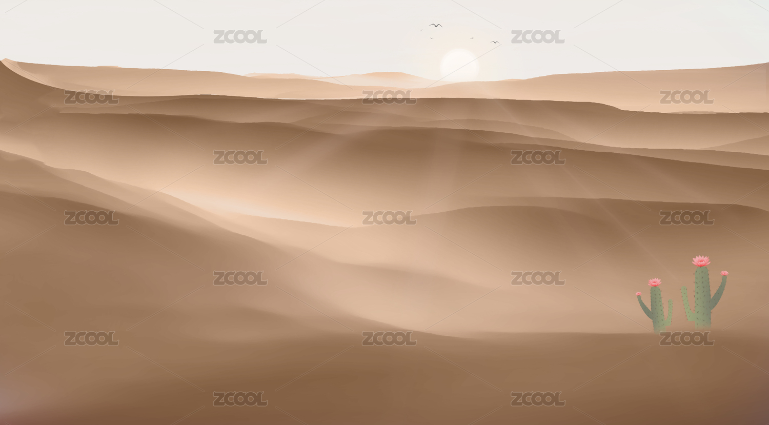 炎熱夏天太陽照耀整片天空,沙塵在起伏的干旱沙漠中不停的吹動(dòng)中國風(fēng)插畫背景海報(bào)