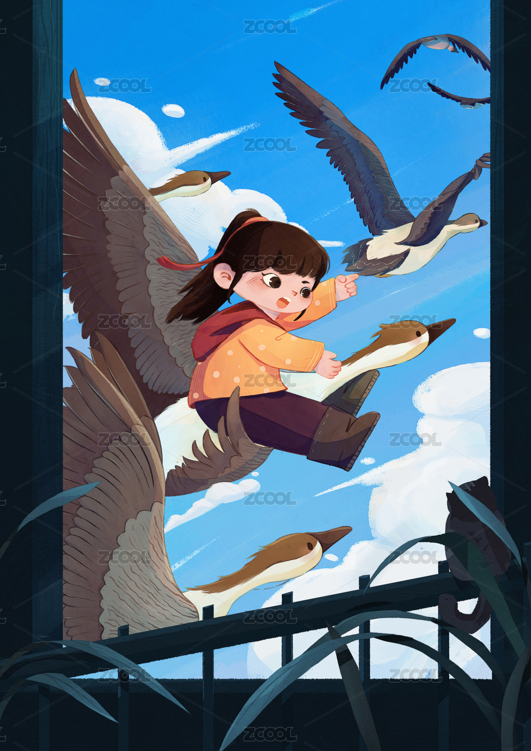 中國風(fēng)白露鴻雁節(jié)氣插畫