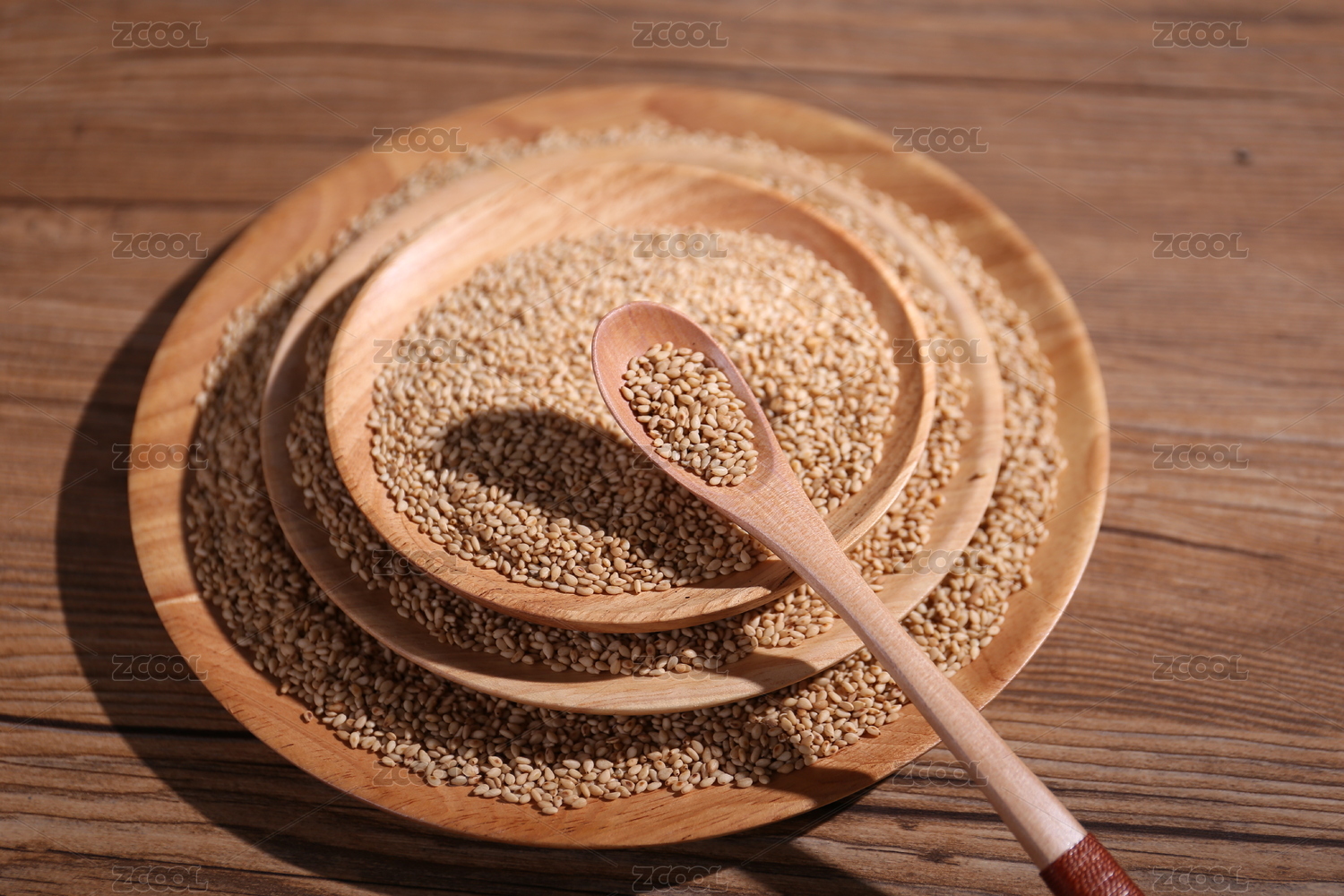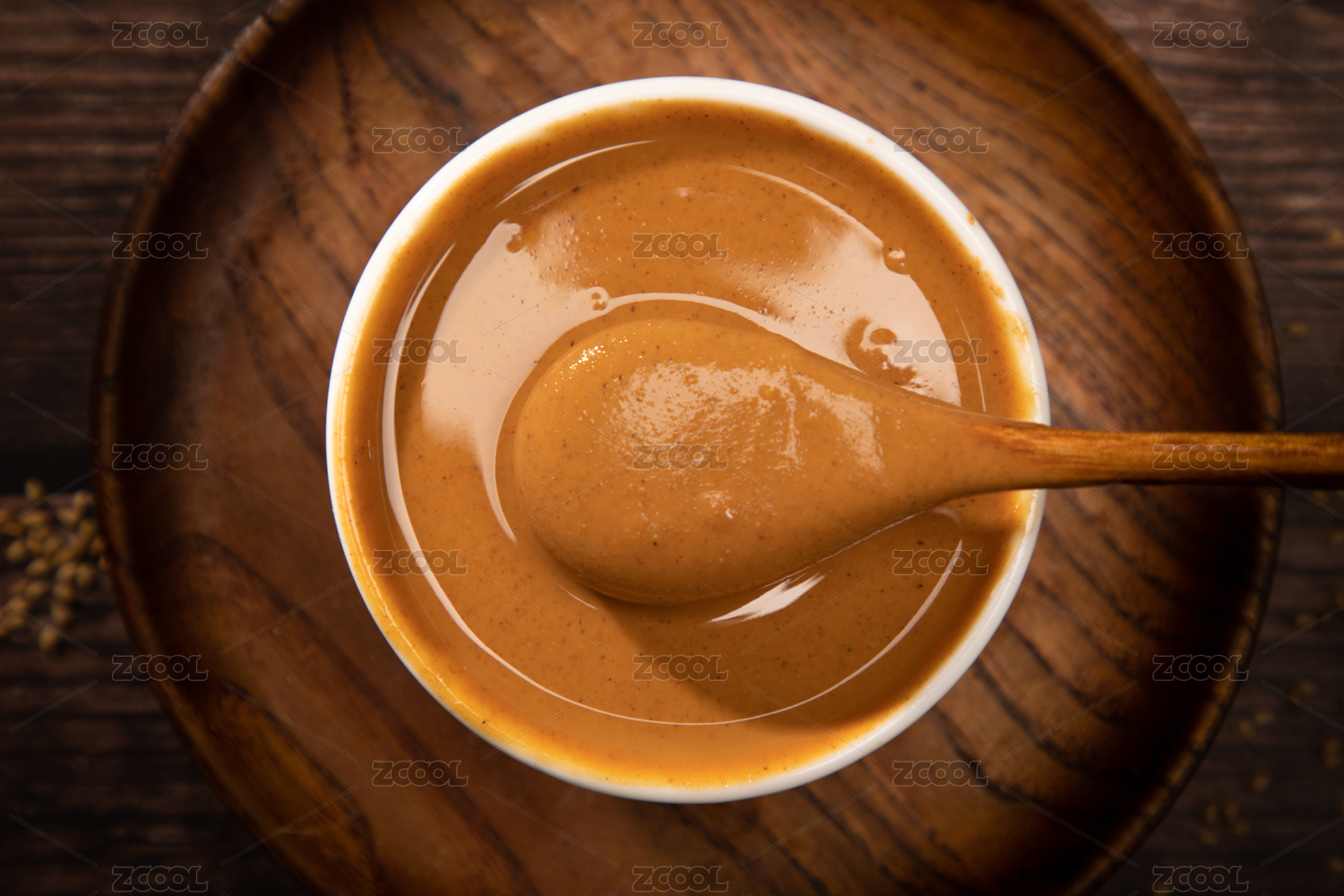 放在木紋背景木盤(pán)上的白芝麻