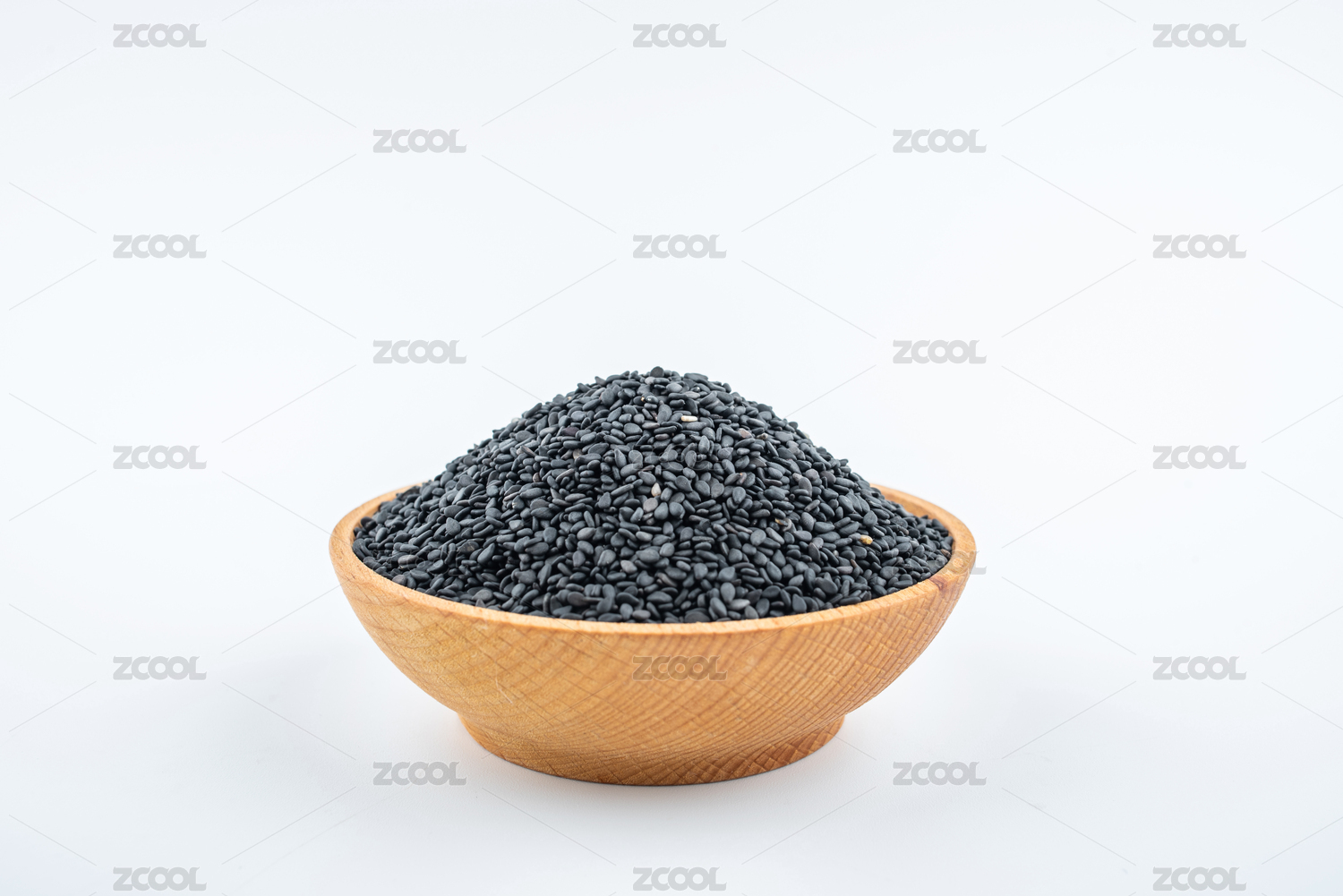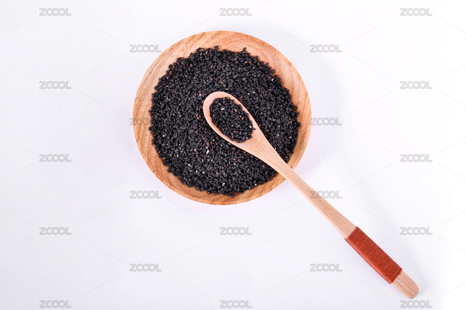 白色背景上木盤(pán)子里的黑芝麻