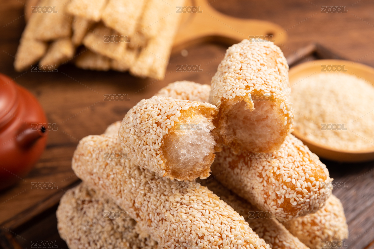 傳統(tǒng)中式背景中裹滿(mǎn)芝麻的麻棗