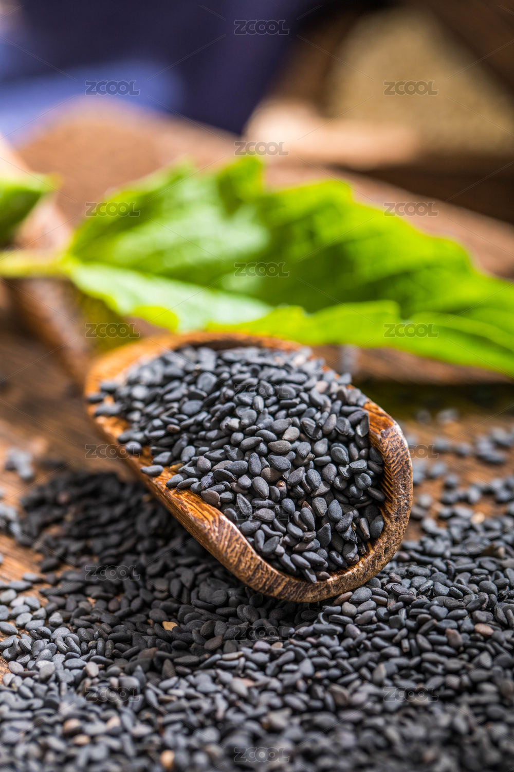 用木勺裝著的黑芝麻
