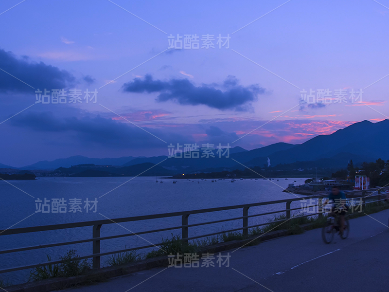 香港大埔區(qū)大美督船灣淡水湖水壩人群與晚霞延時(shí)風(fēng)景