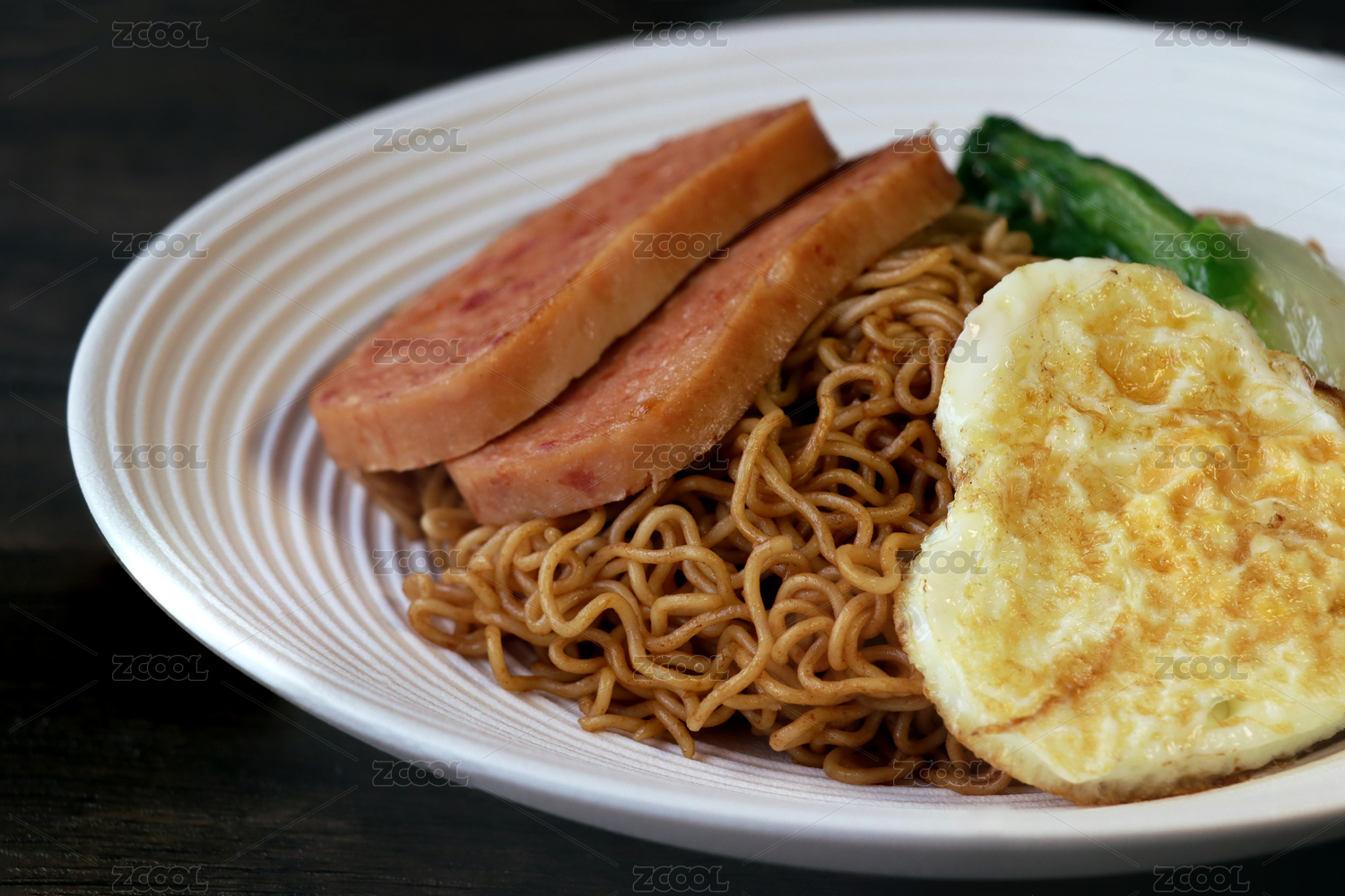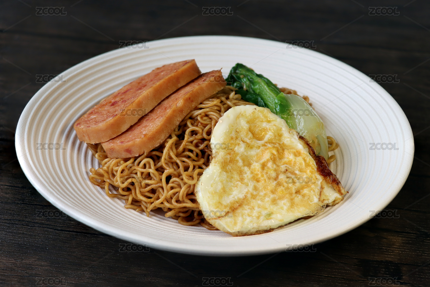 厚切餐蛋撈丁,煎蛋午餐肉青菜