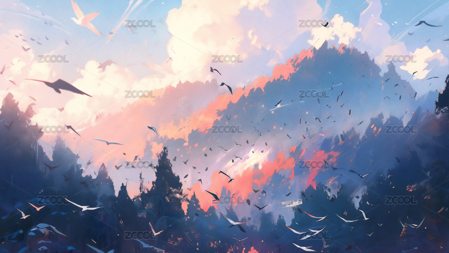 山林與鳥(niǎo)群