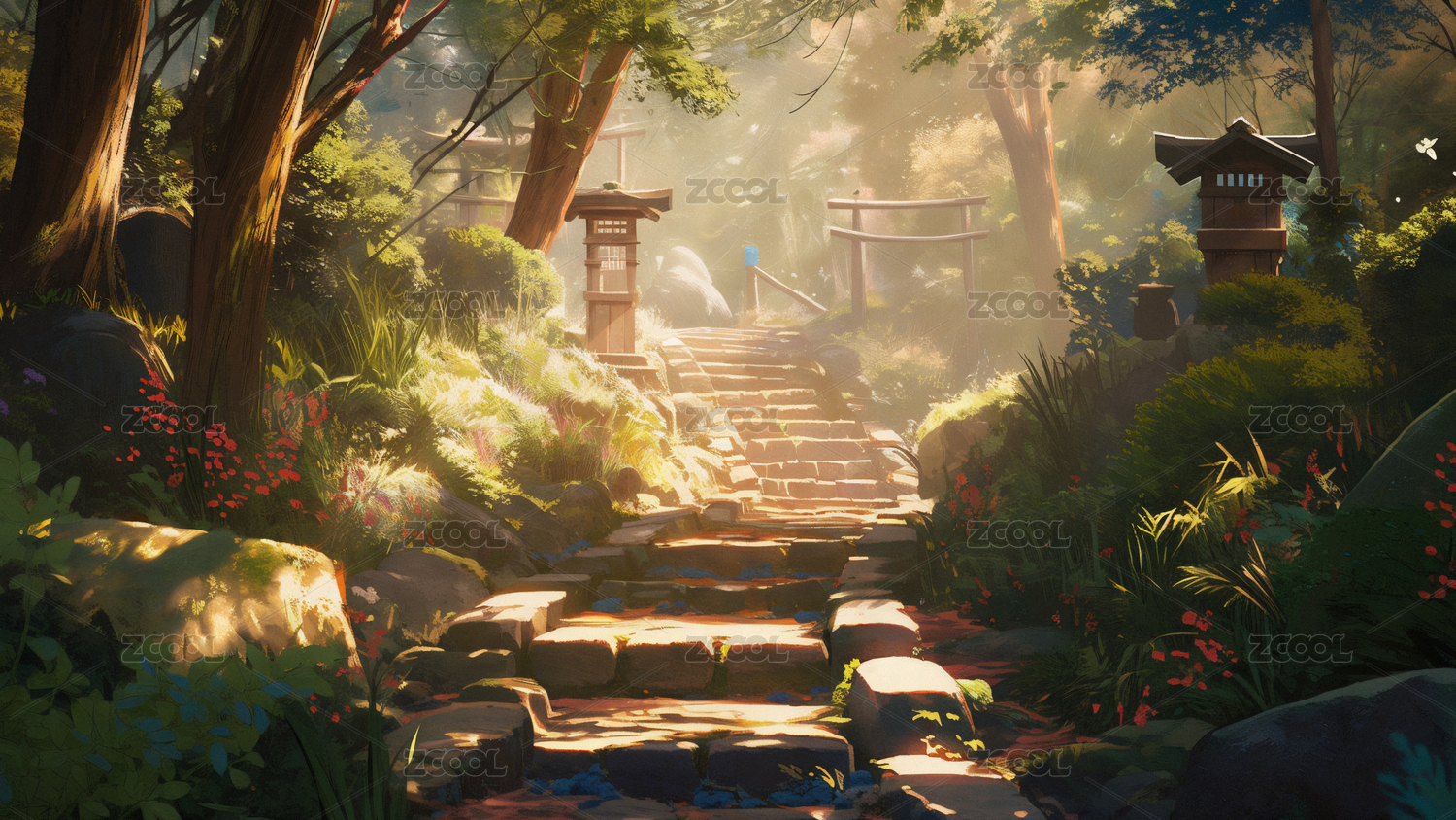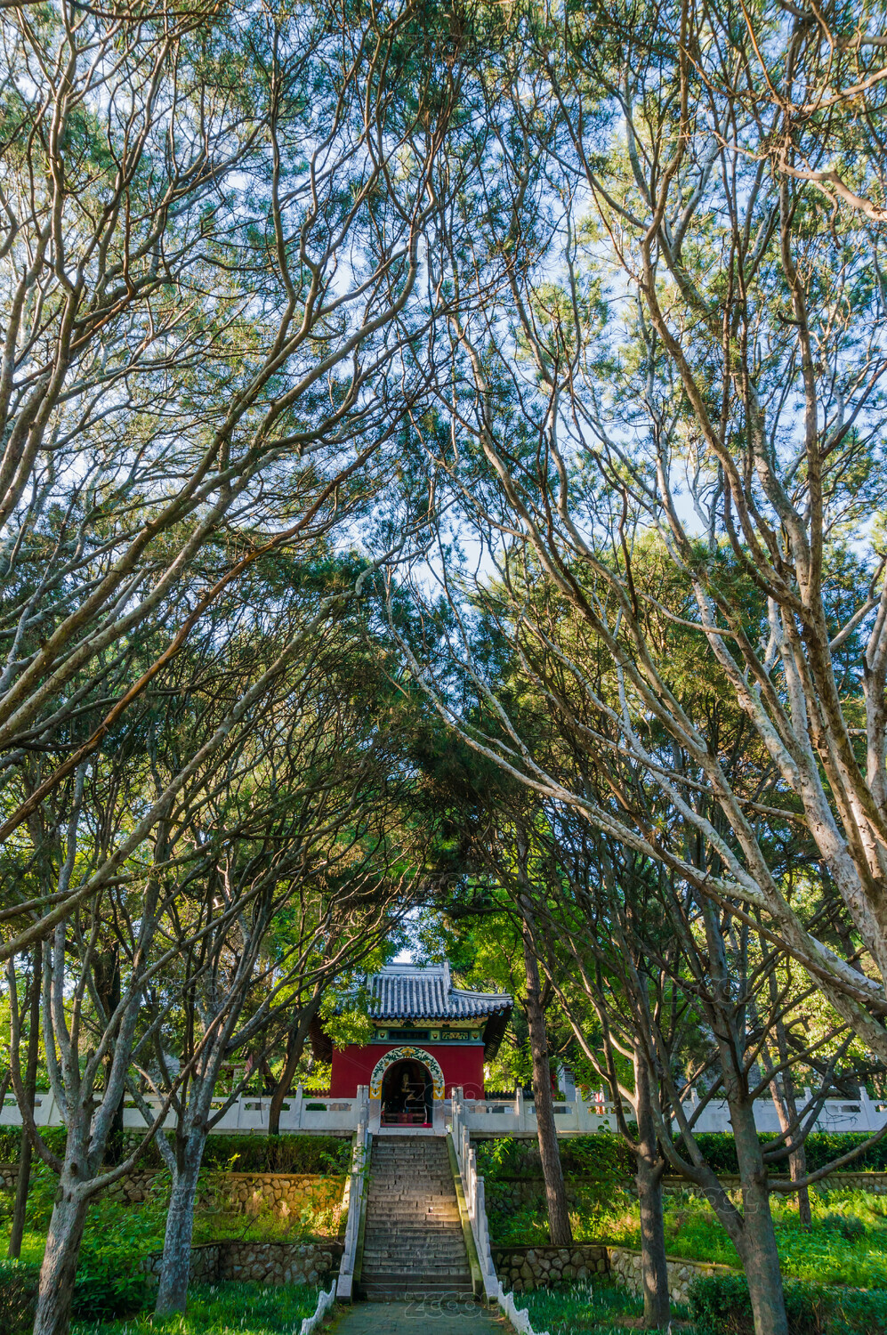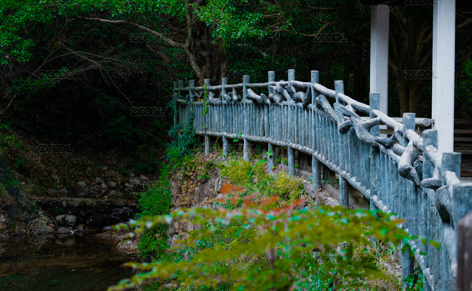山林間的青石護(hù)欄小徑