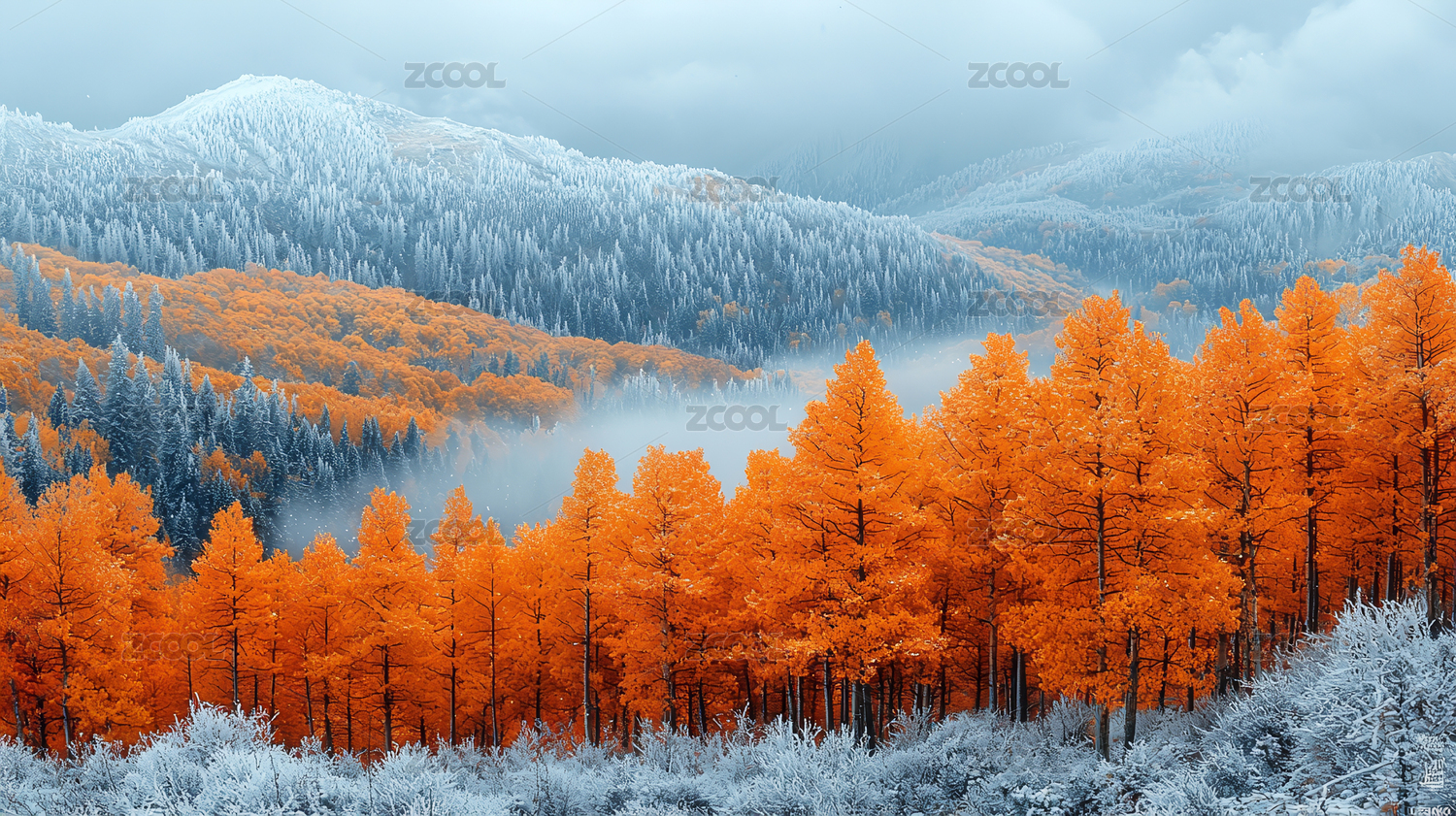 秋冬山林風(fēng)雪圖插畫(huà)