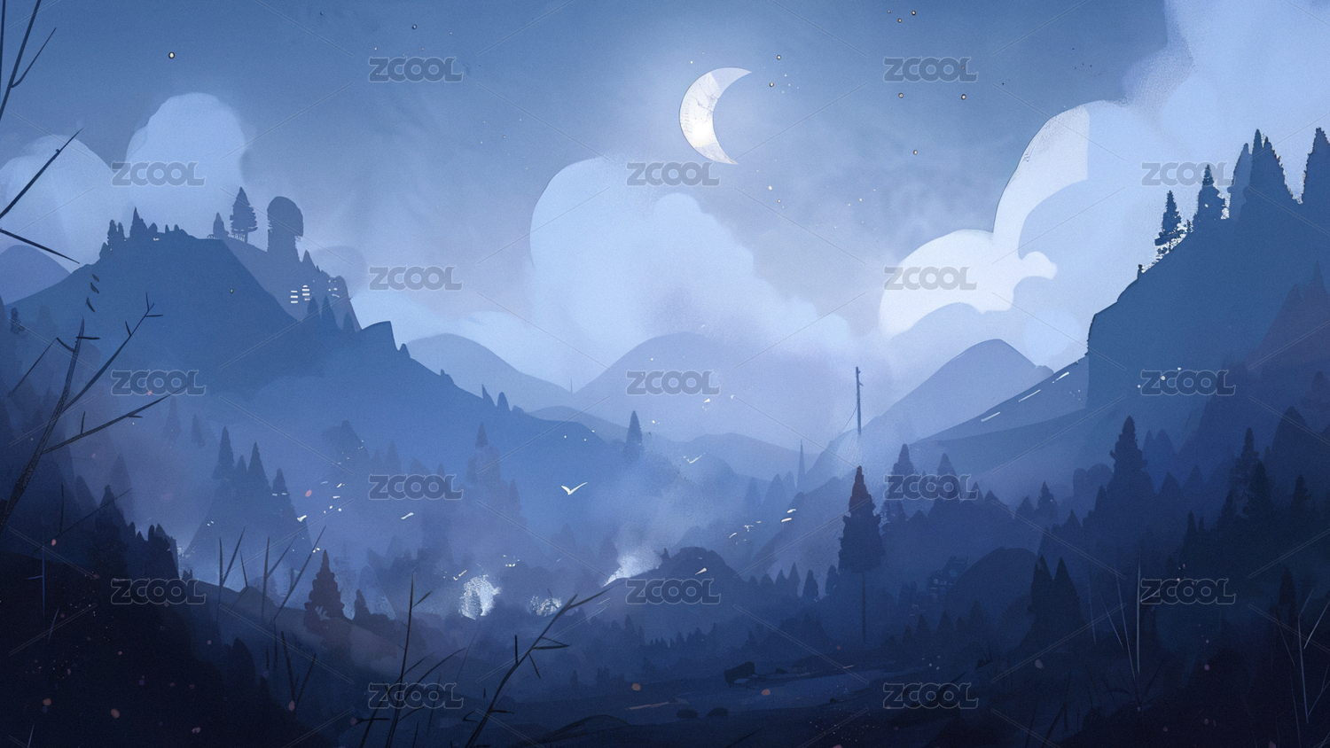 夜色下的山林