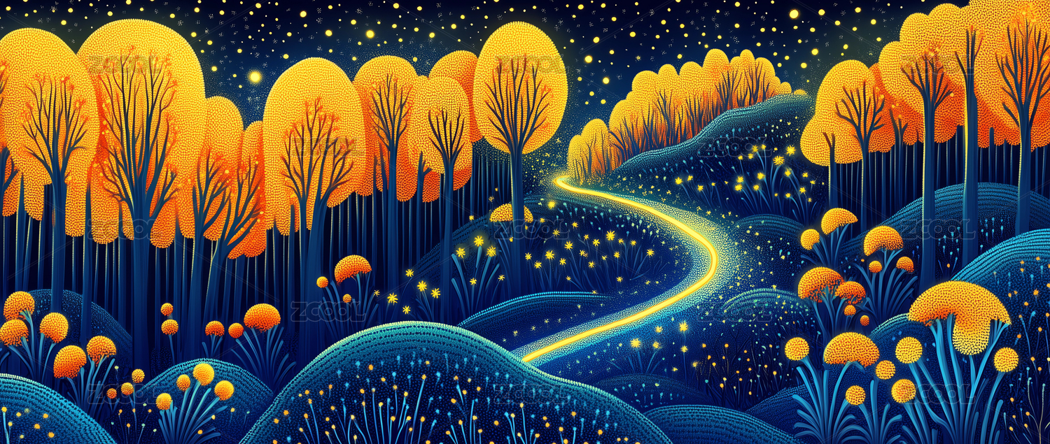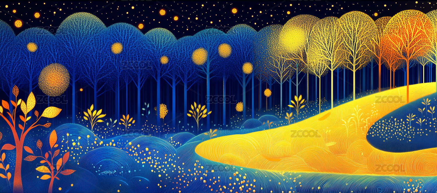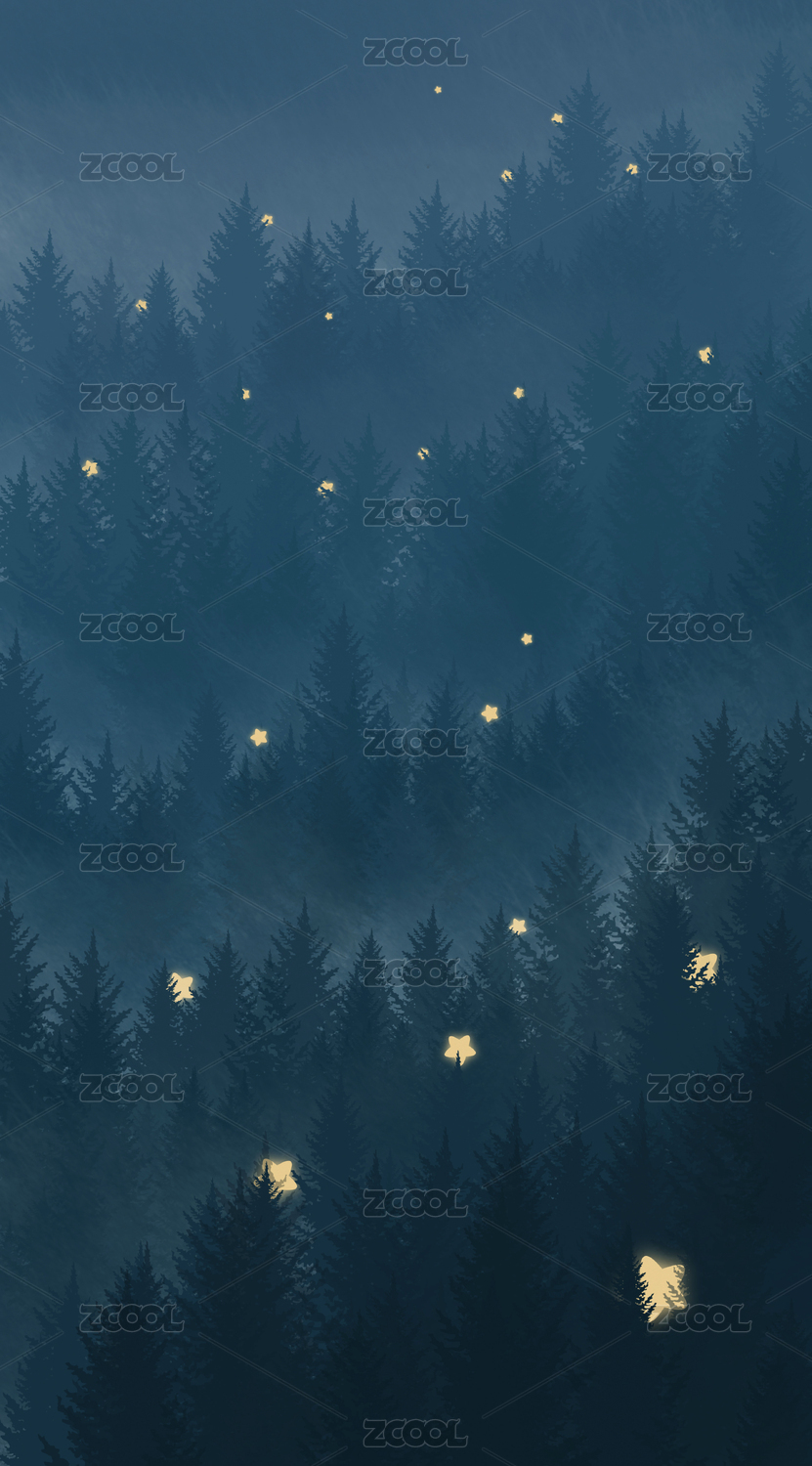 夜晚的山林中有很多星星插畫(huà)
