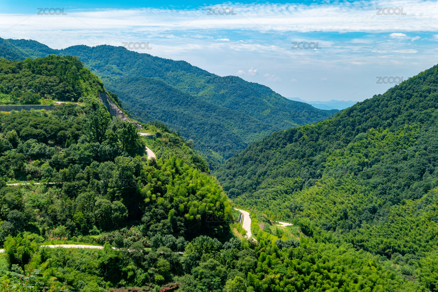 中國(guó)浙江山綠色山林間的盤(pán)山公路