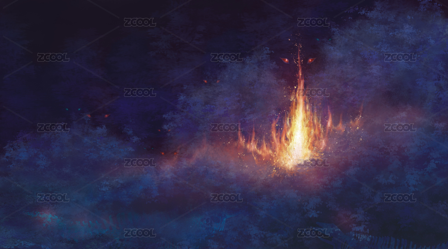 夜晚山林中火焰
