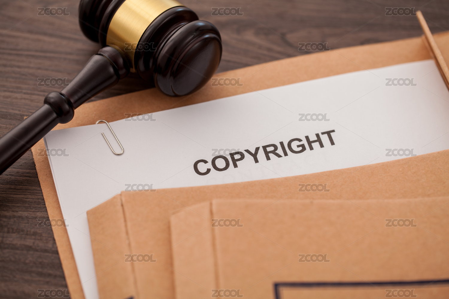 印著版權(quán)字樣的文件和木槌的特寫(xiě)