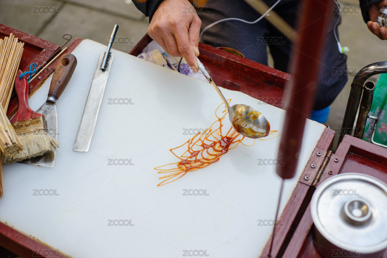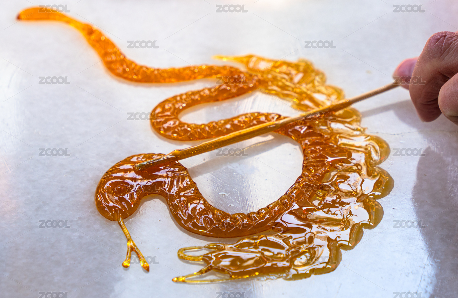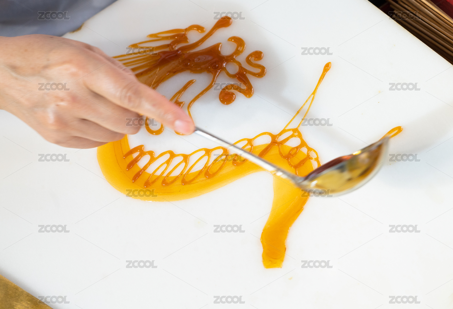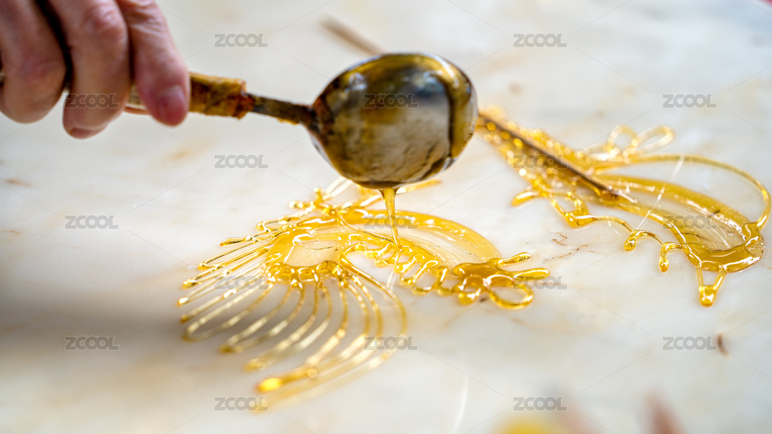 正在制作中的糖畫民間手工藝
