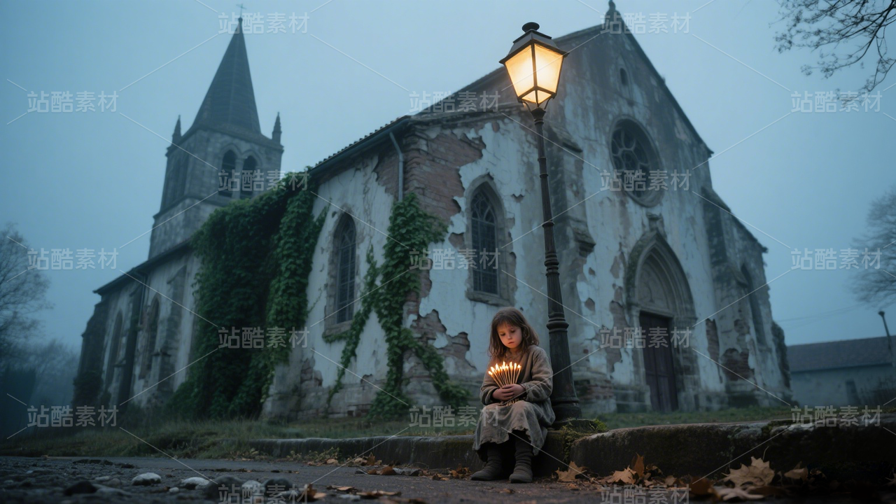 身穿藍(lán)色歐式連衣裙的詭異女孩