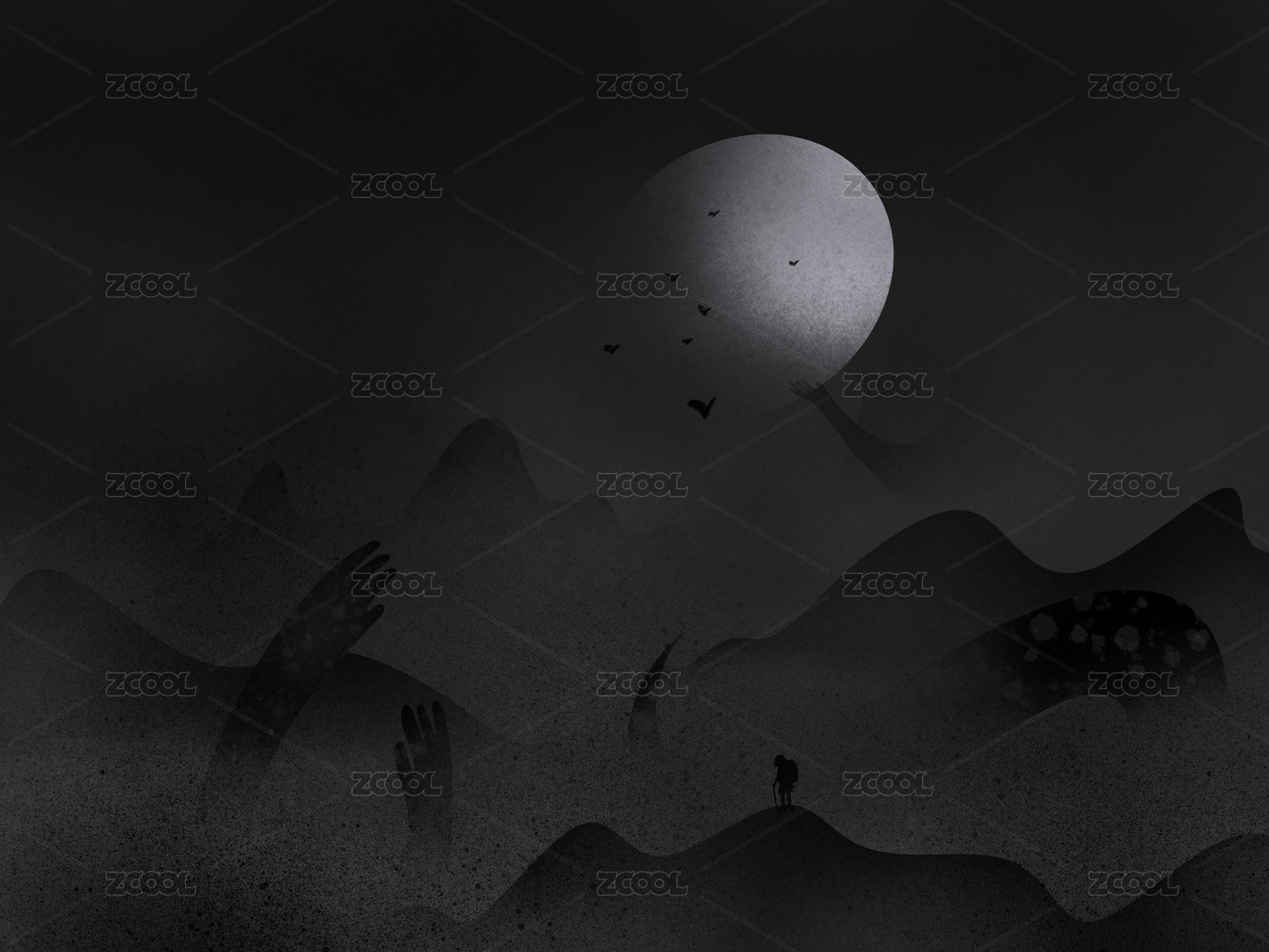 黑暗山丘詭異怪物恐怖氣氛插畫(huà)背景設(shè)計(jì)