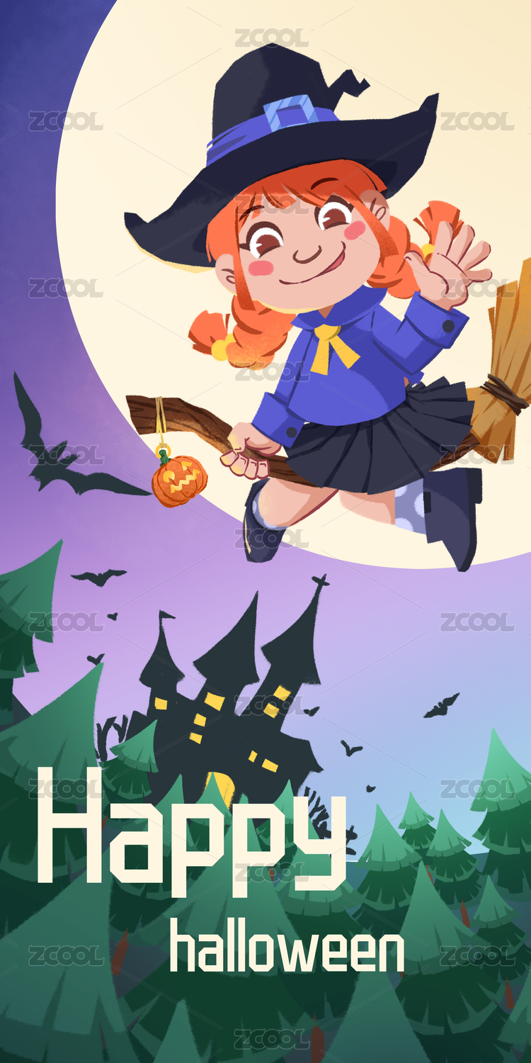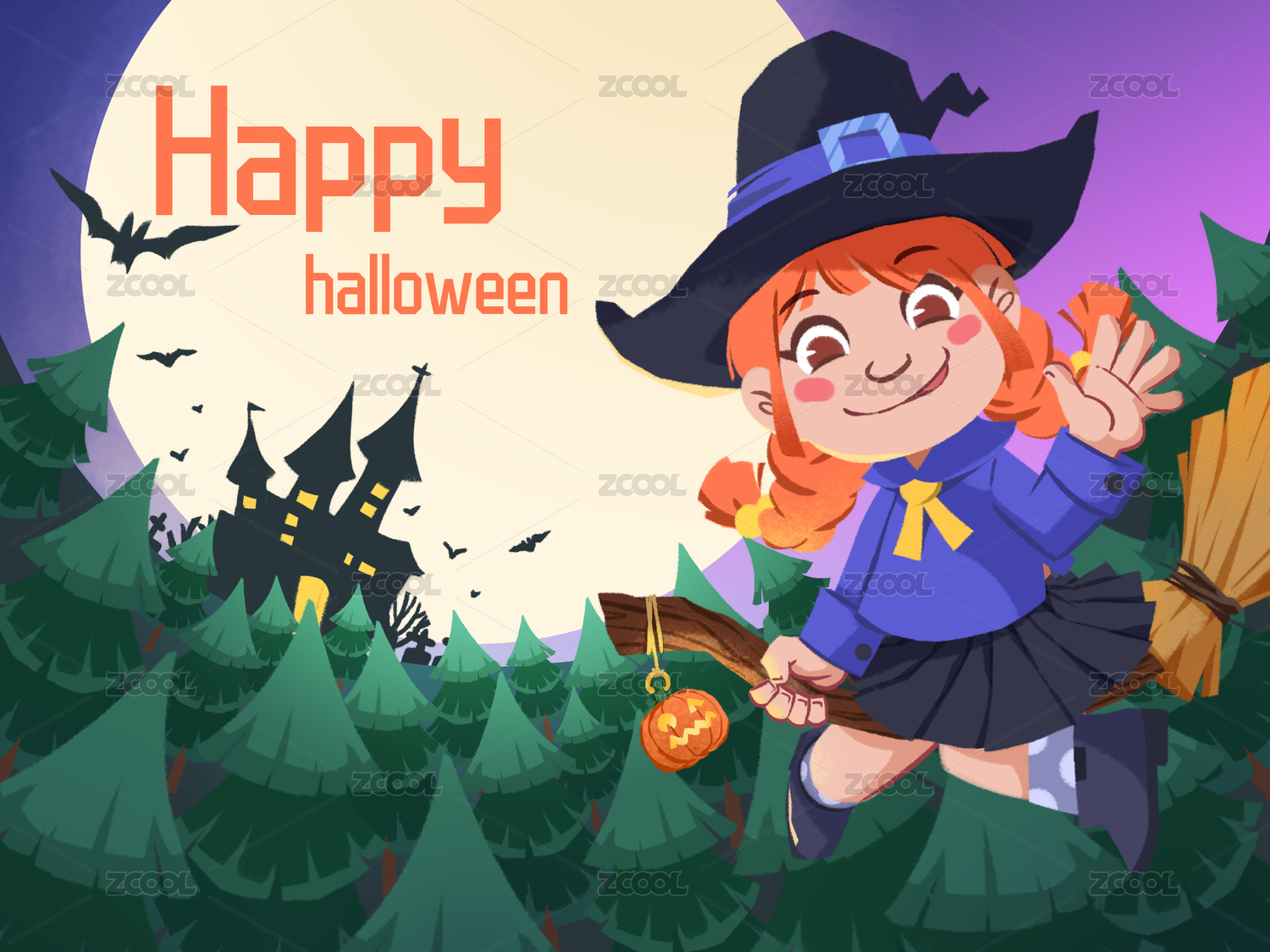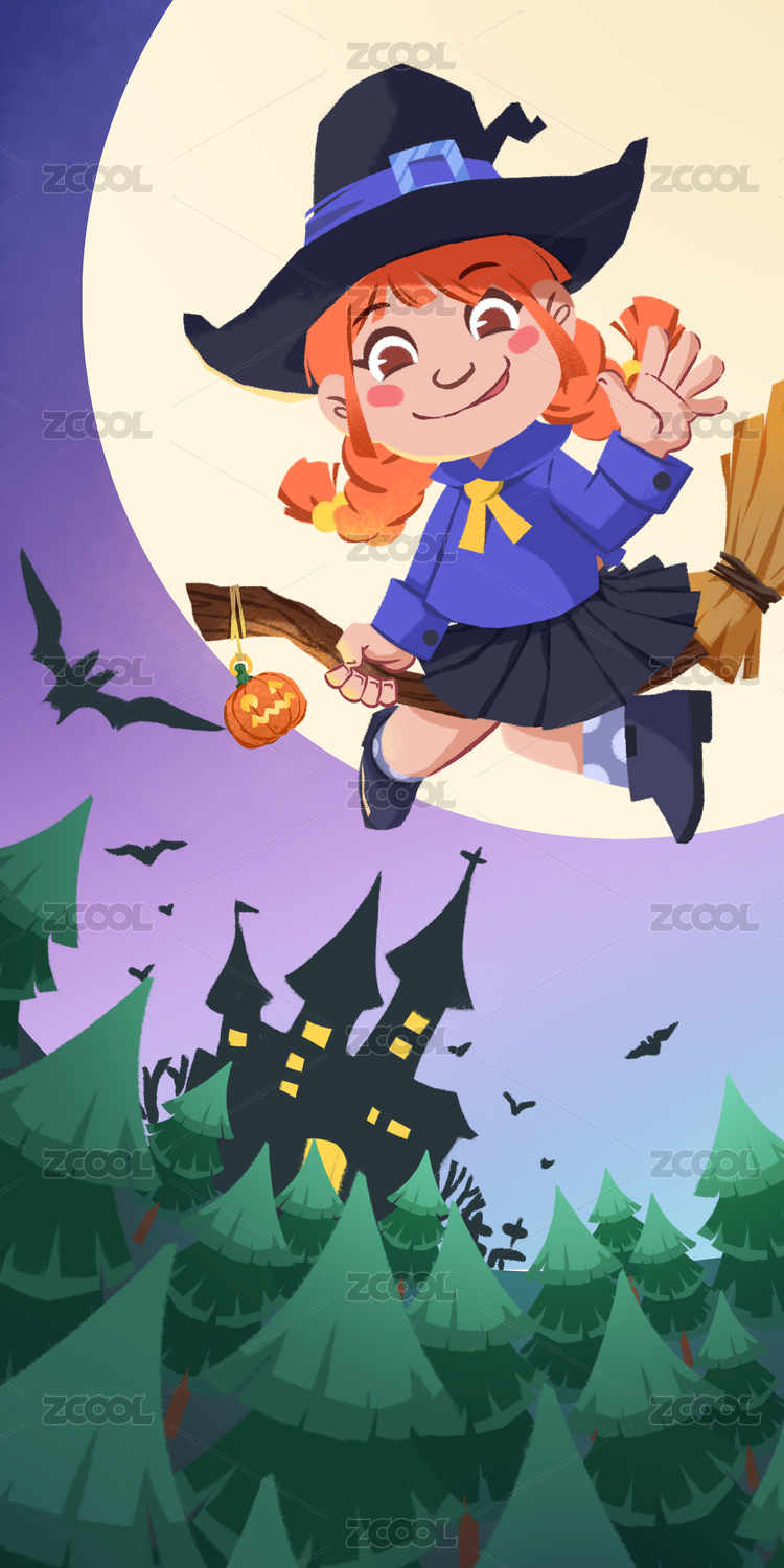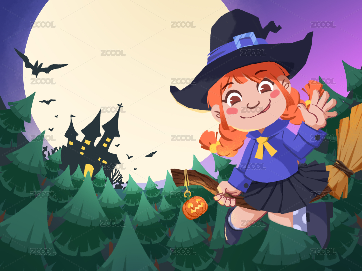 手繪魔女詭異的邀請(qǐng)參加萬(wàn)圣節(jié)