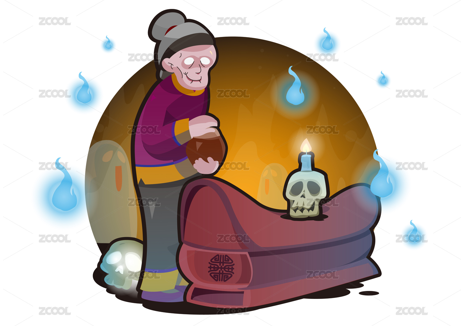 七月半中元節(jié)中國(guó)風(fēng)可愛(ài)矢量詭異龍婆鬼節(jié)