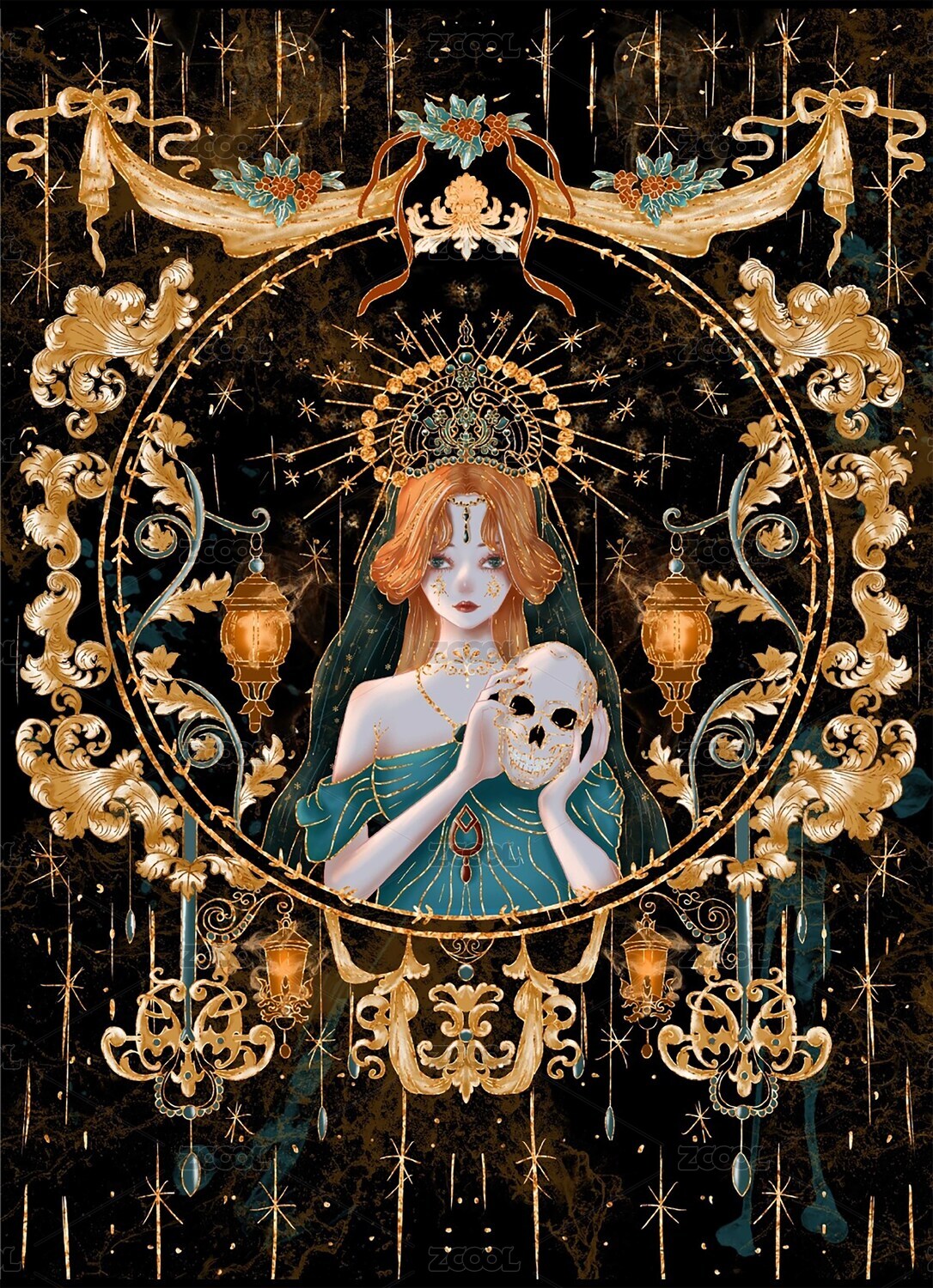手里托著骷髏頭的巴洛克風(fēng)格詭異女孩