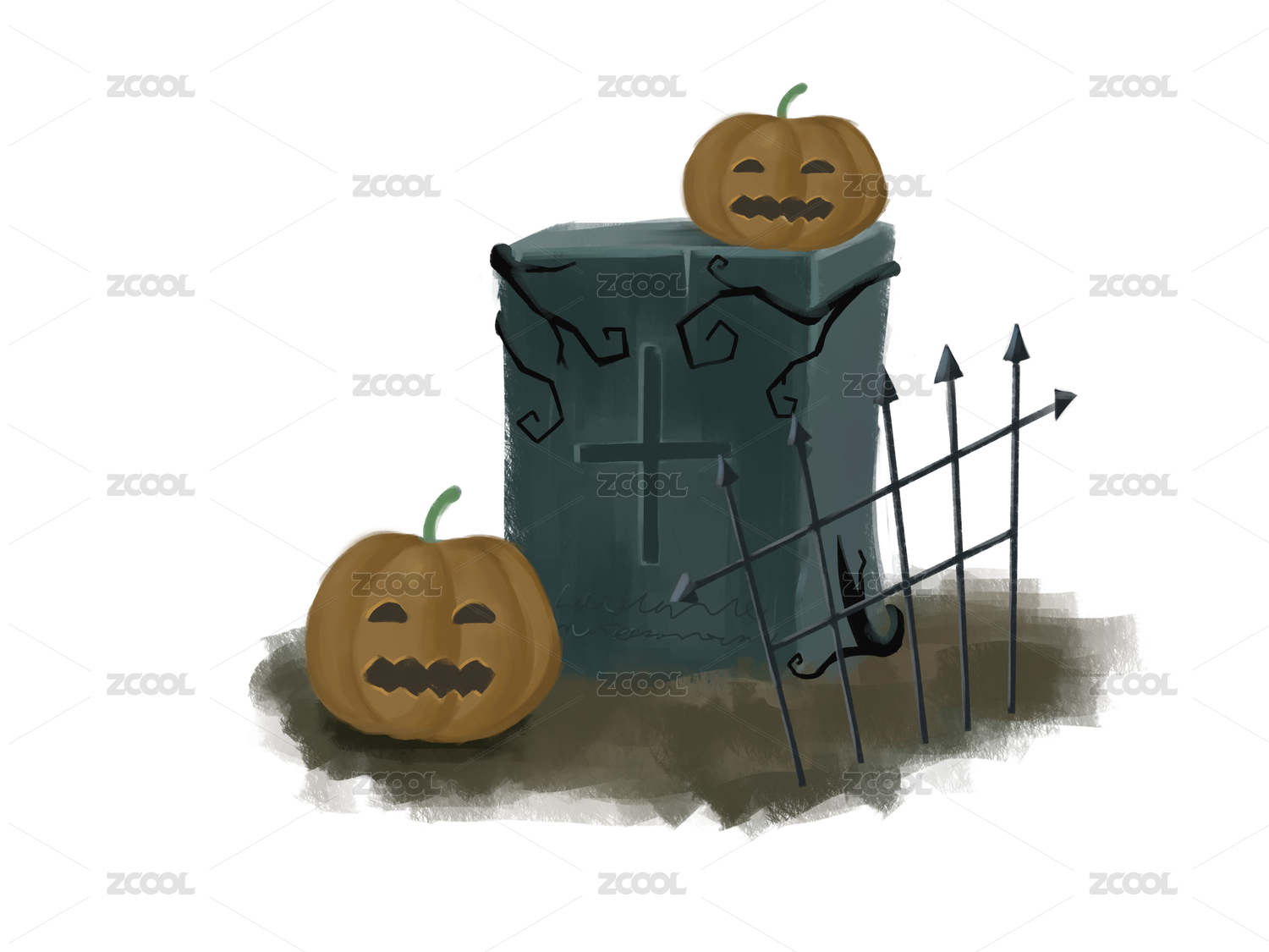 墨綠色萬(wàn)圣節(jié)詭異墓碑欄桿南瓜元素