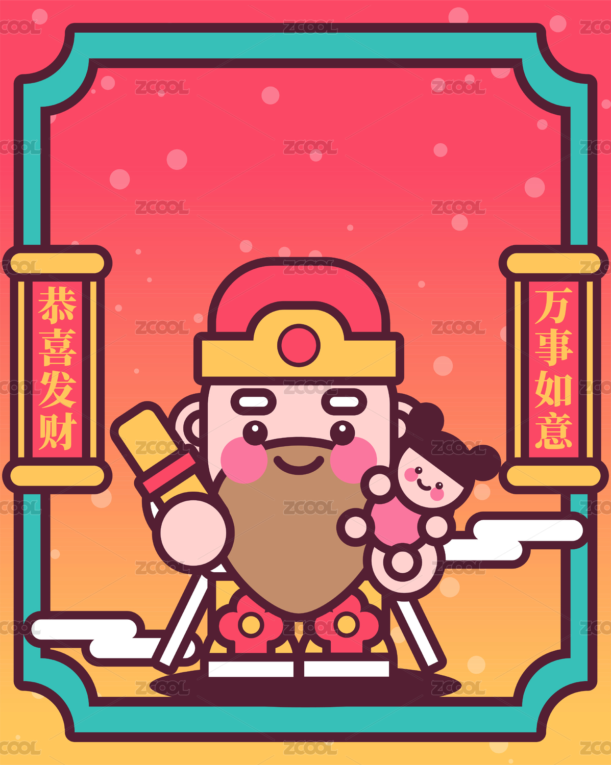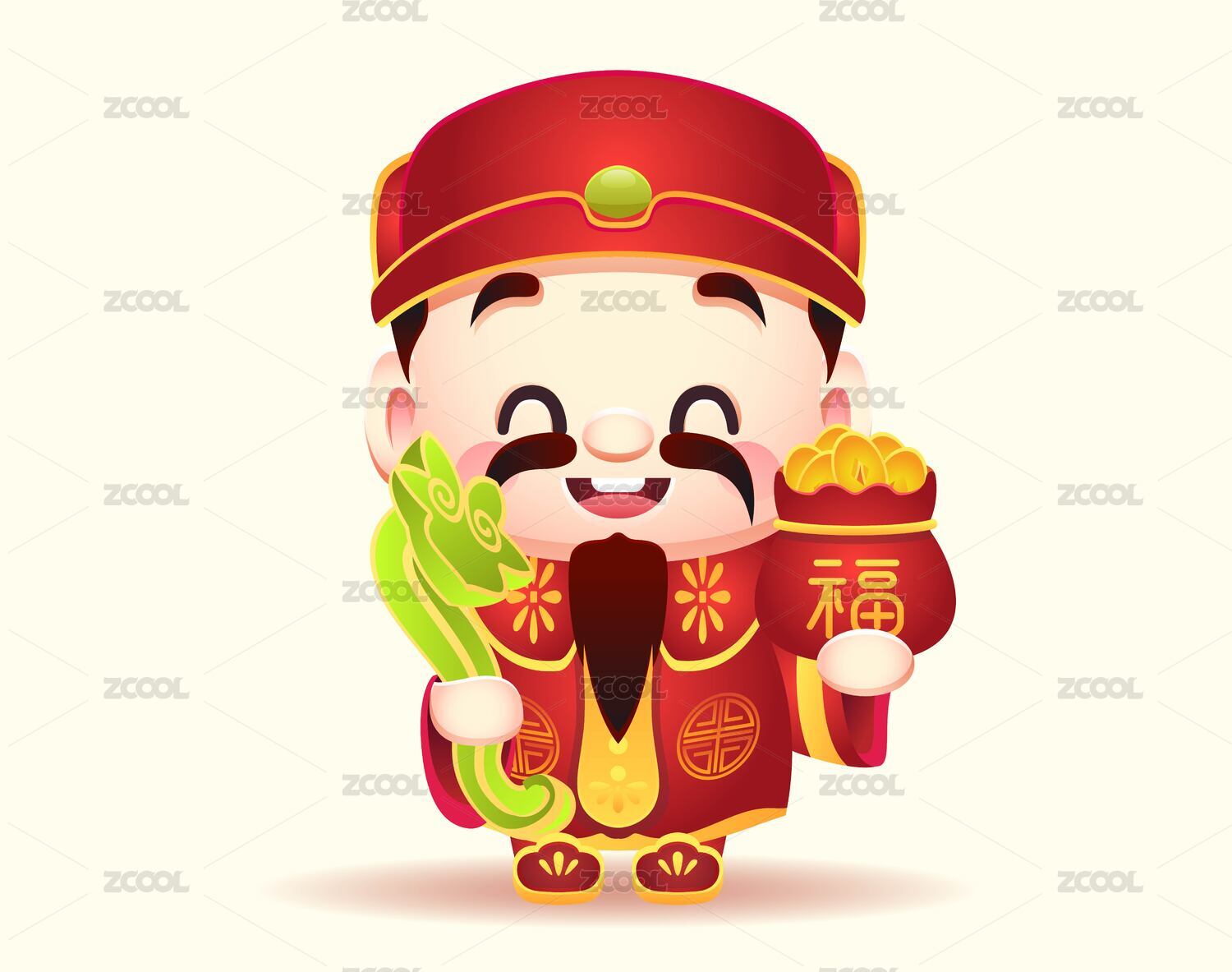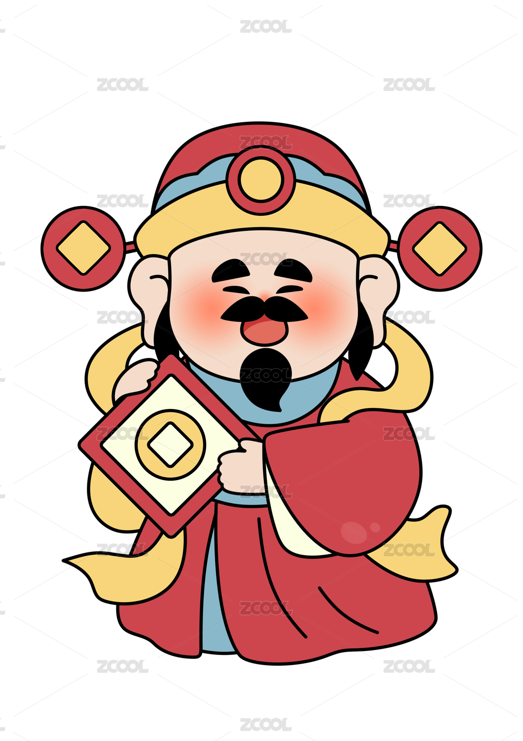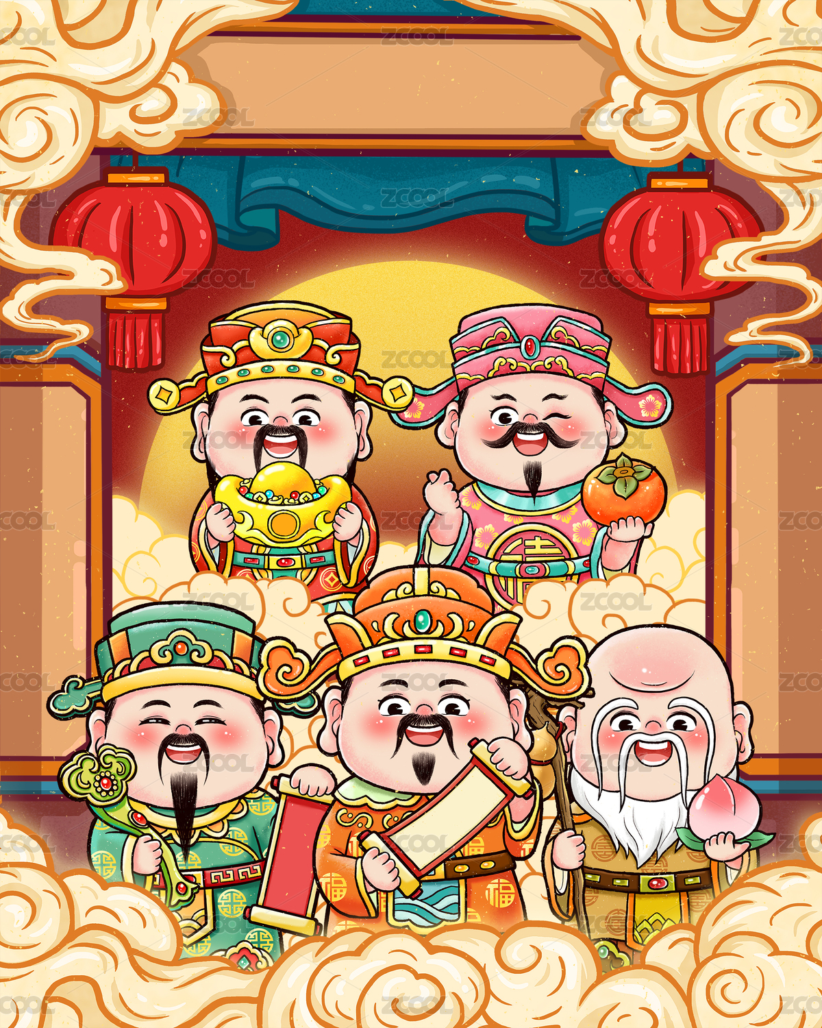 春節(jié)五福星財(cái)神元寶國(guó)潮插畫(huà)