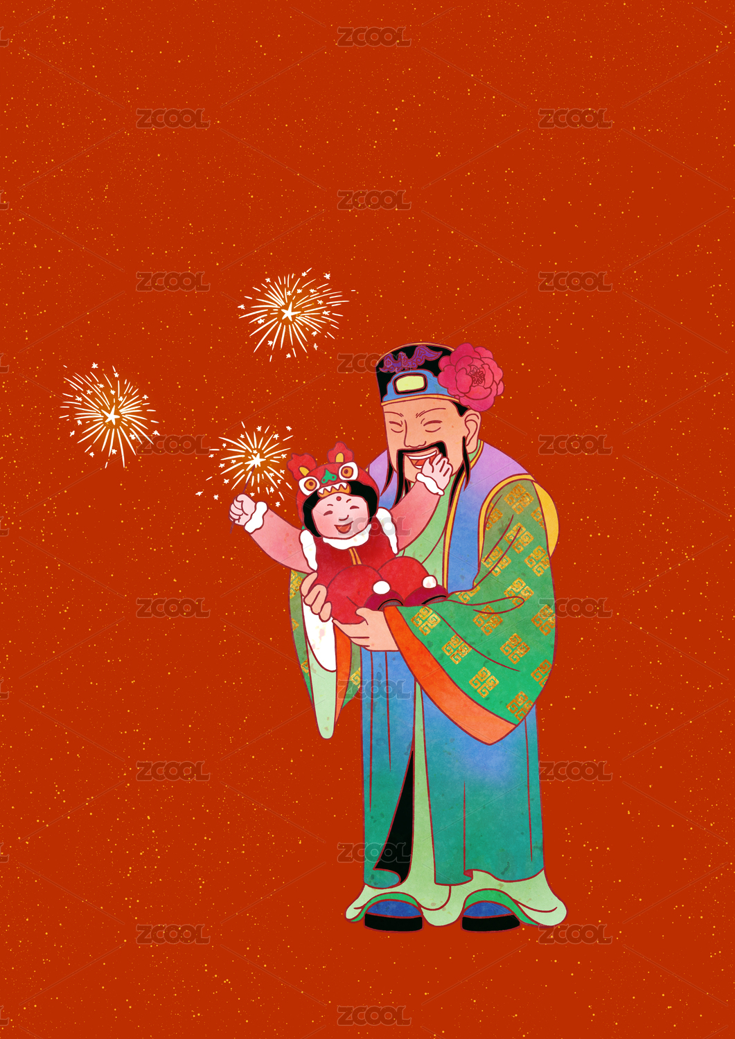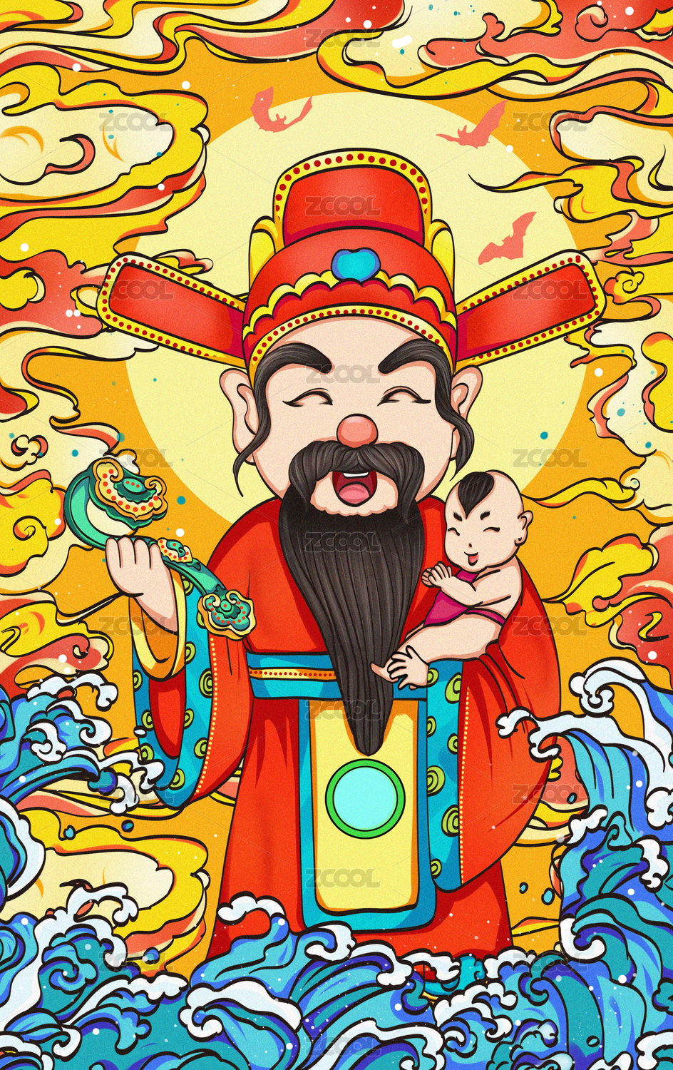 中國(guó)神仙福星國(guó)潮矢量插畫(huà)