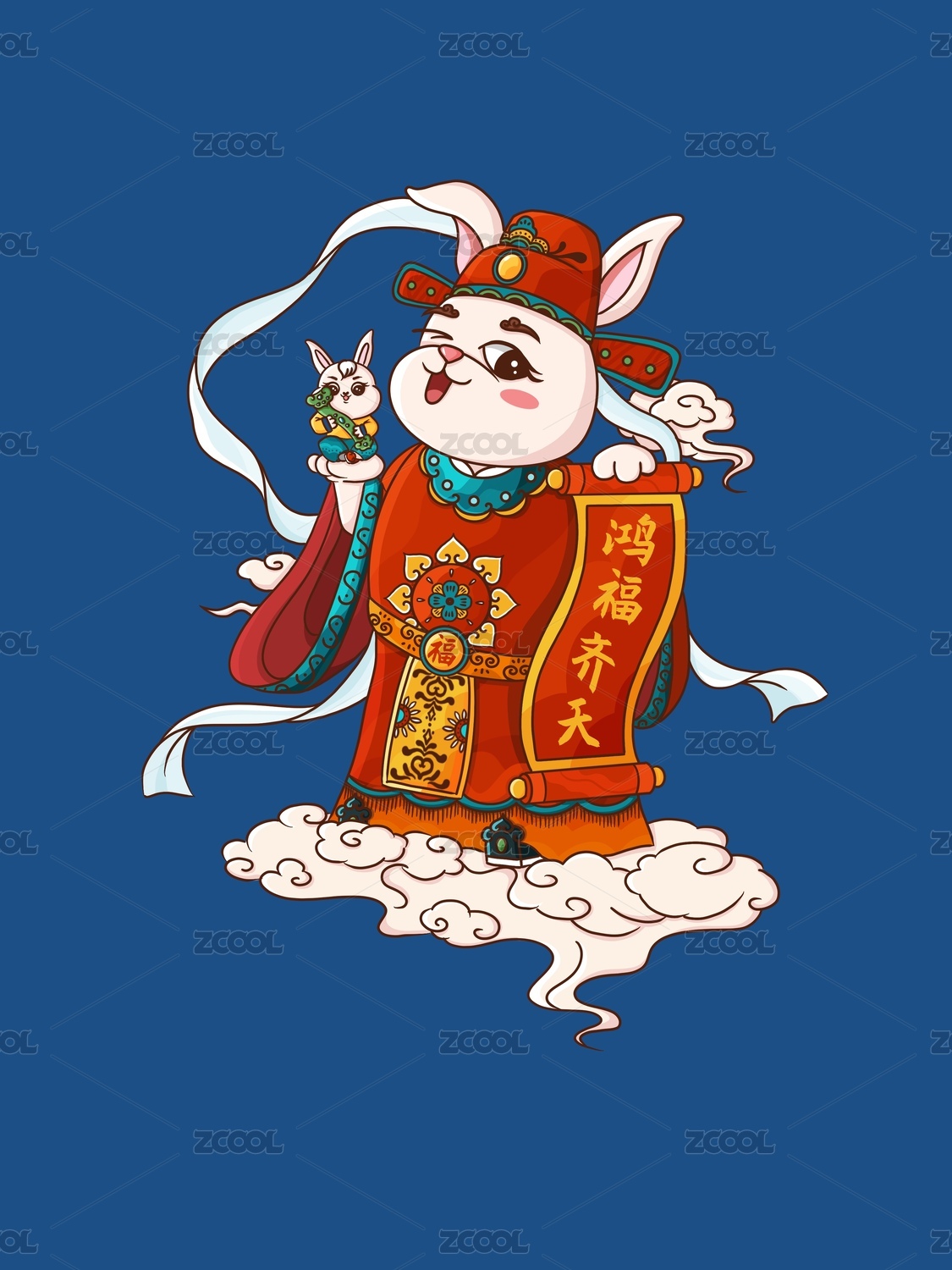 兔年春節(jié)福壽安康掛件式插畫(huà)海報(bào)