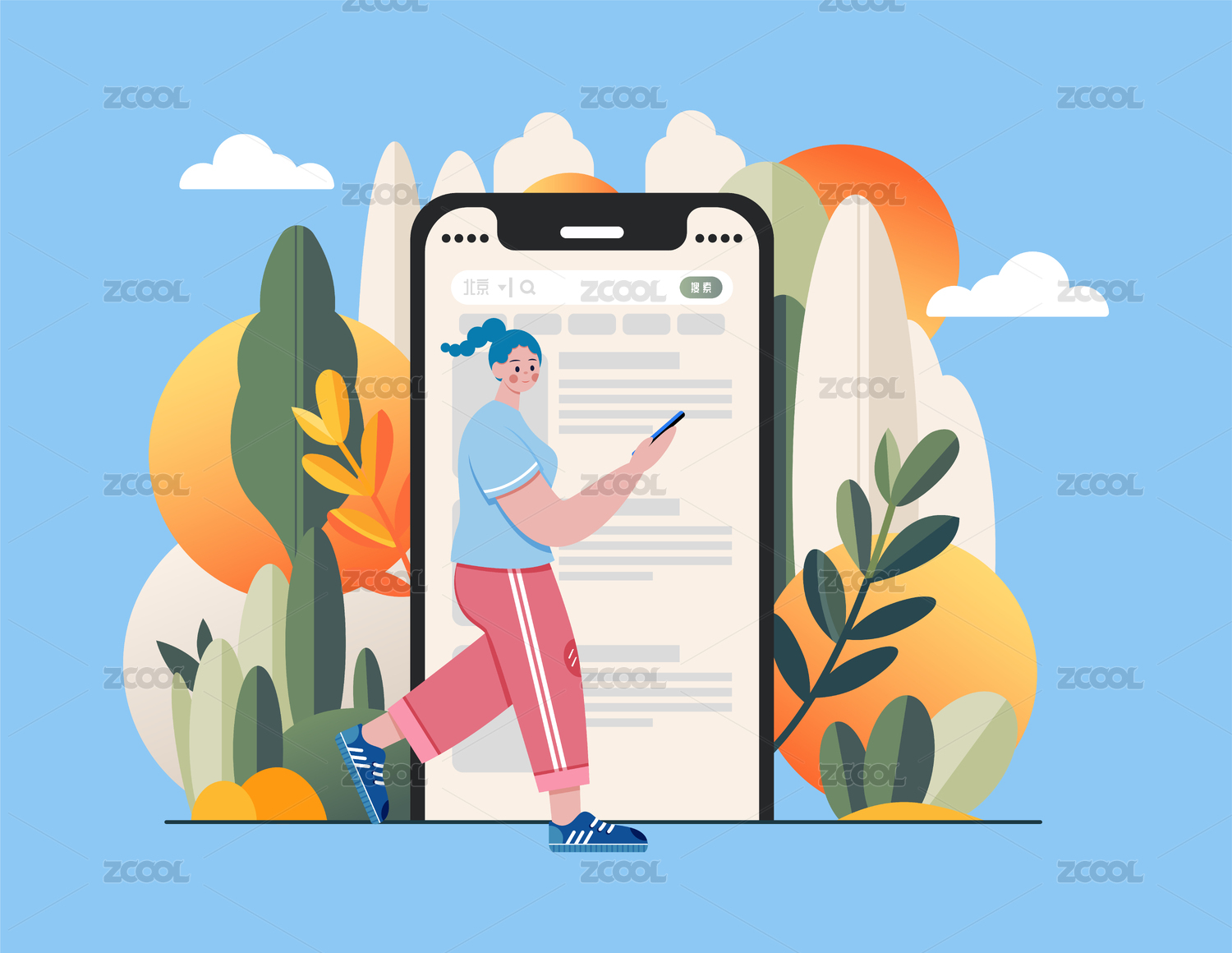 計(jì)劃出門(mén)旅游查找攻略的男人