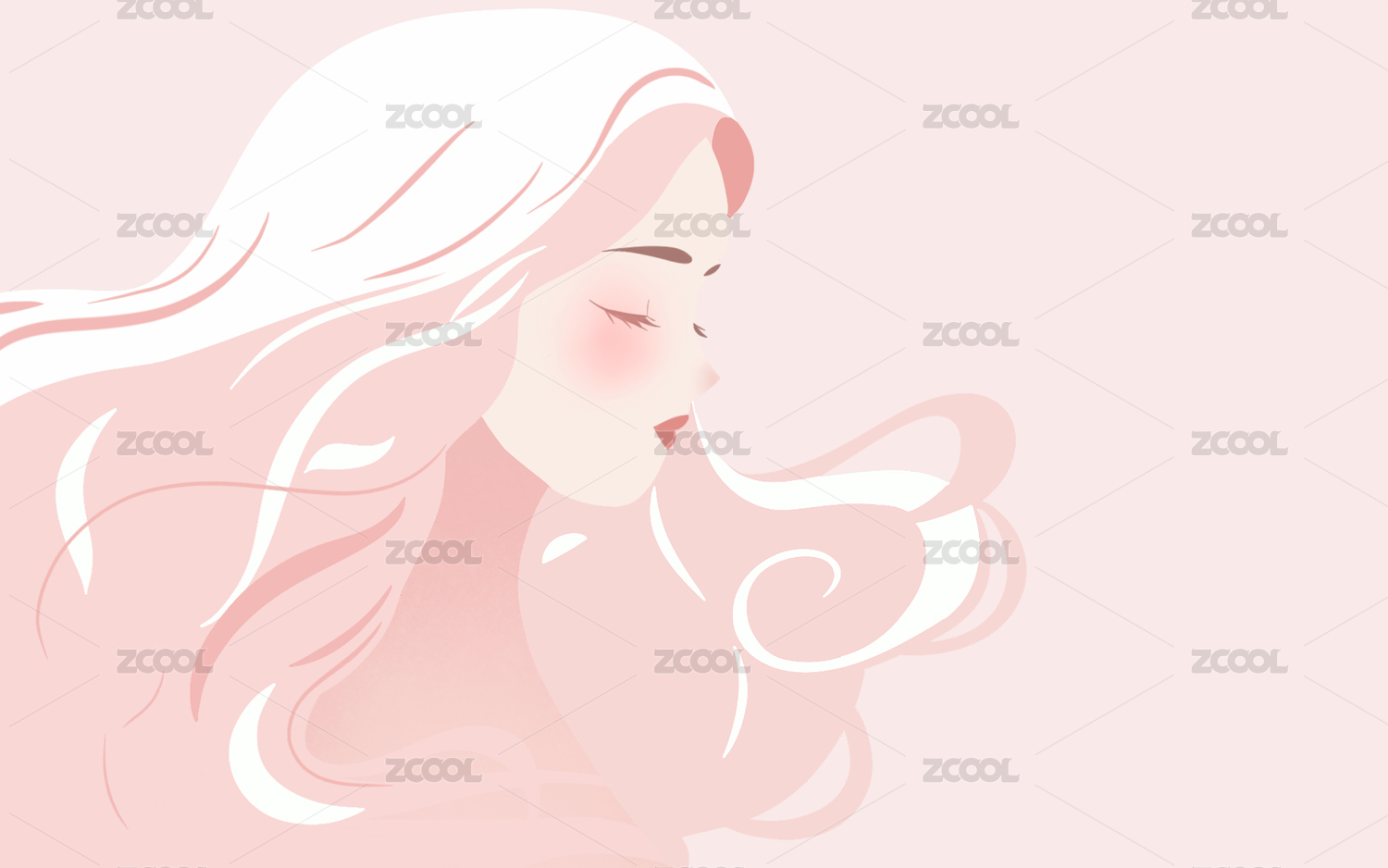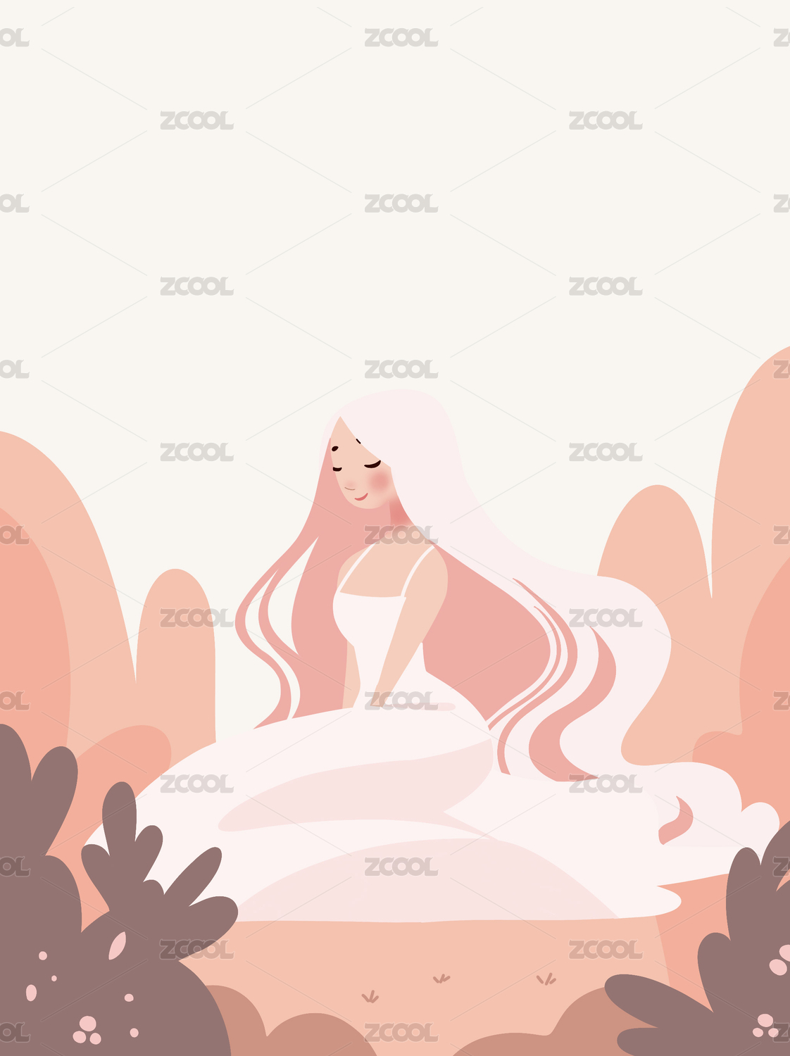 粉色溫柔長發(fā)女孩扁平風格插畫海報背景