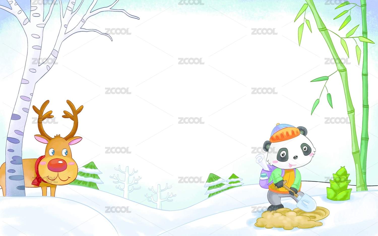 熊貓和梅花鹿在雪地里玩耍挖寶藏
