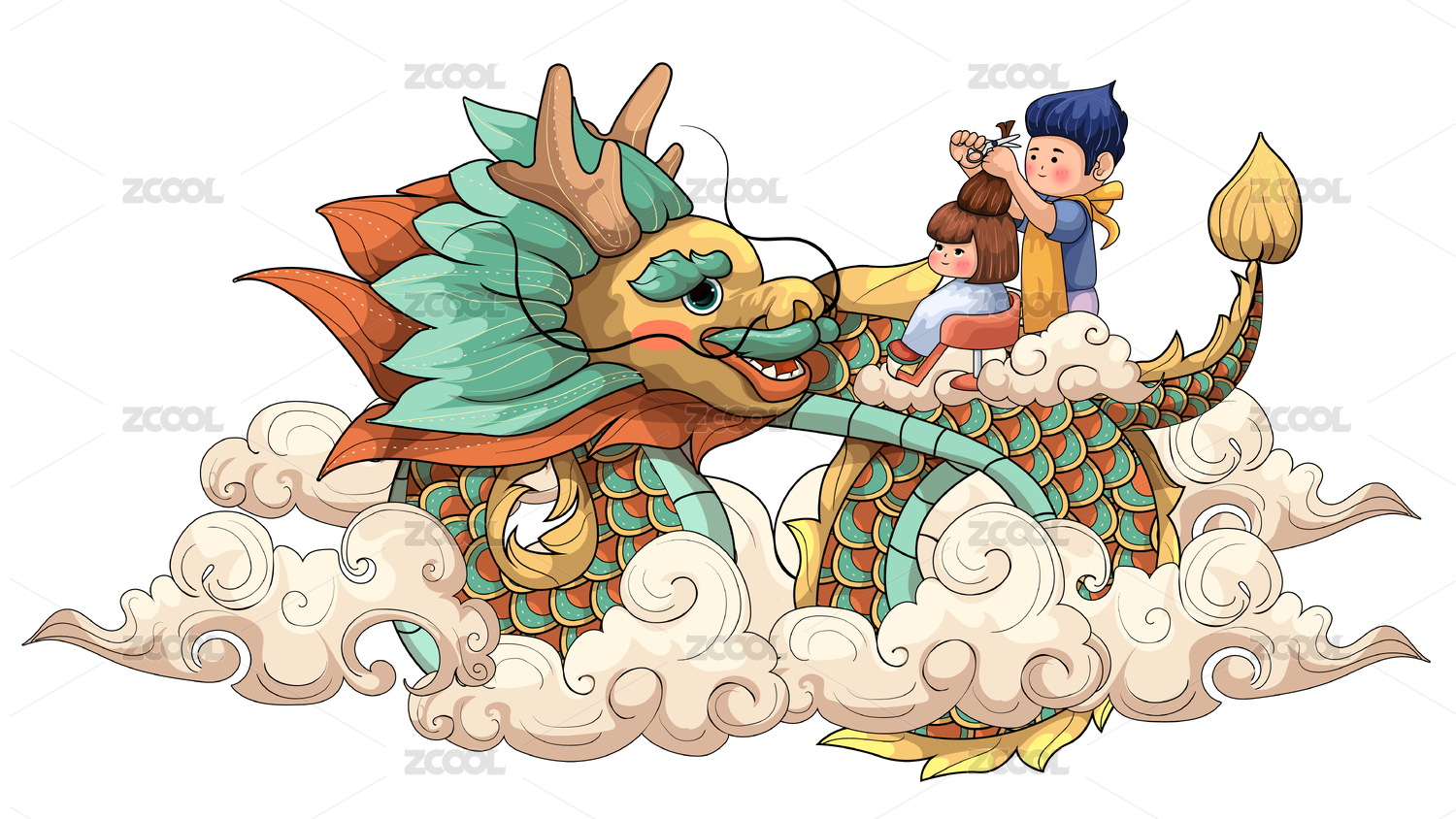 二月二龍?zhí)ь^剪頭發(fā)習(xí)俗矢量插畫(huà)