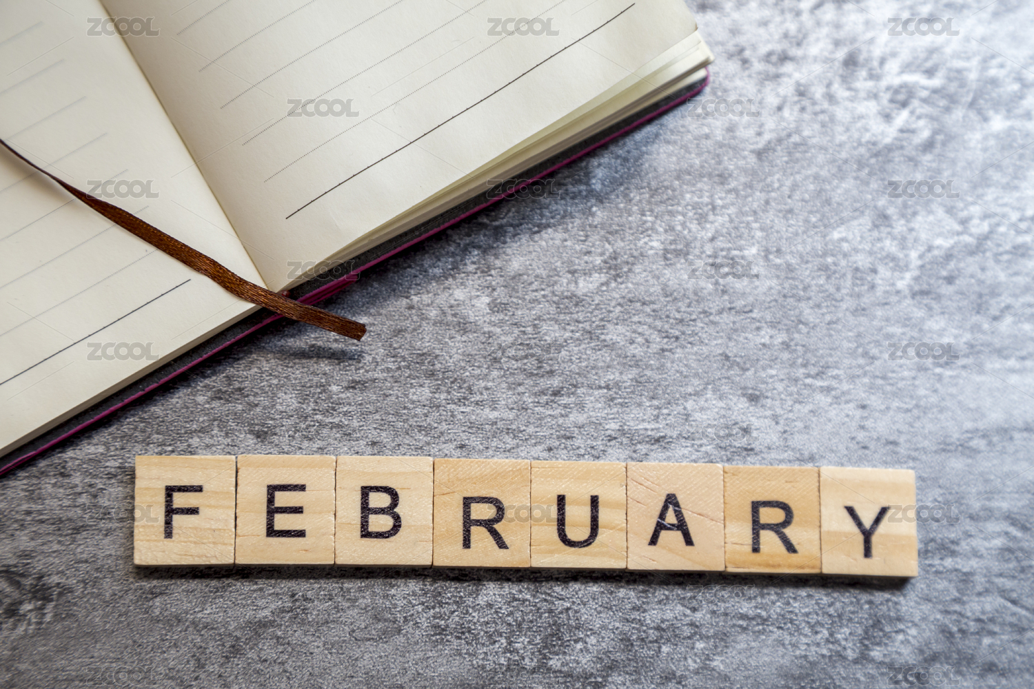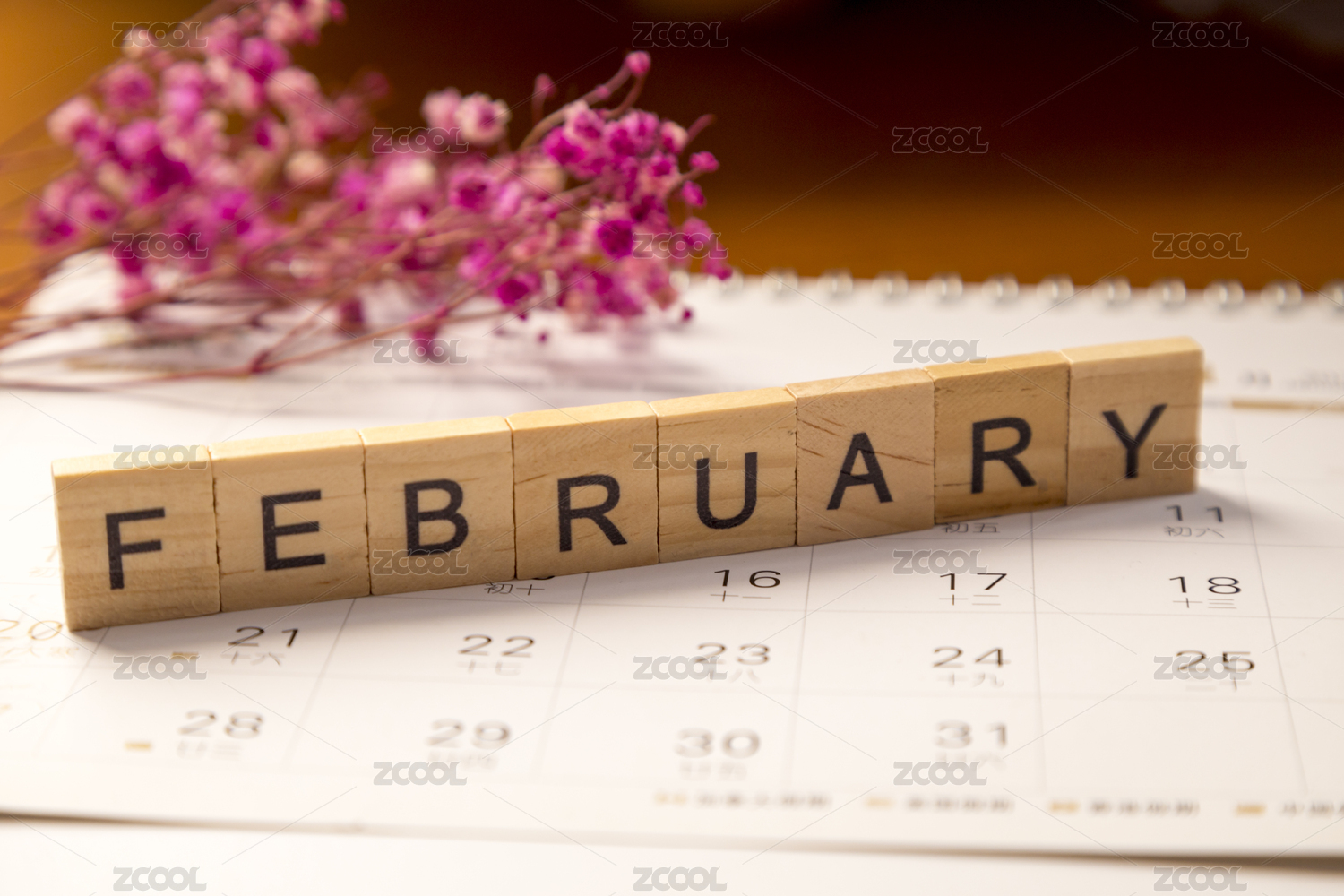 用木質(zhì)積木砌成的字母單詞二月