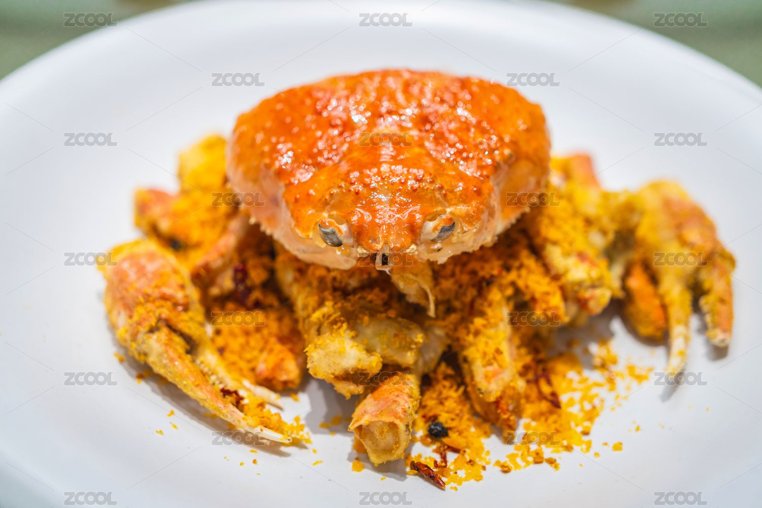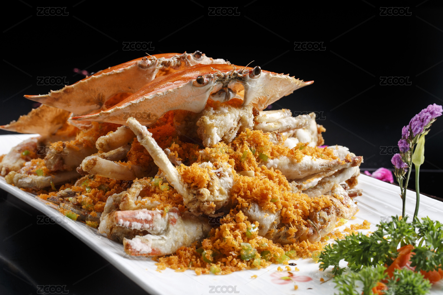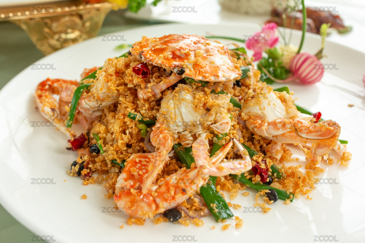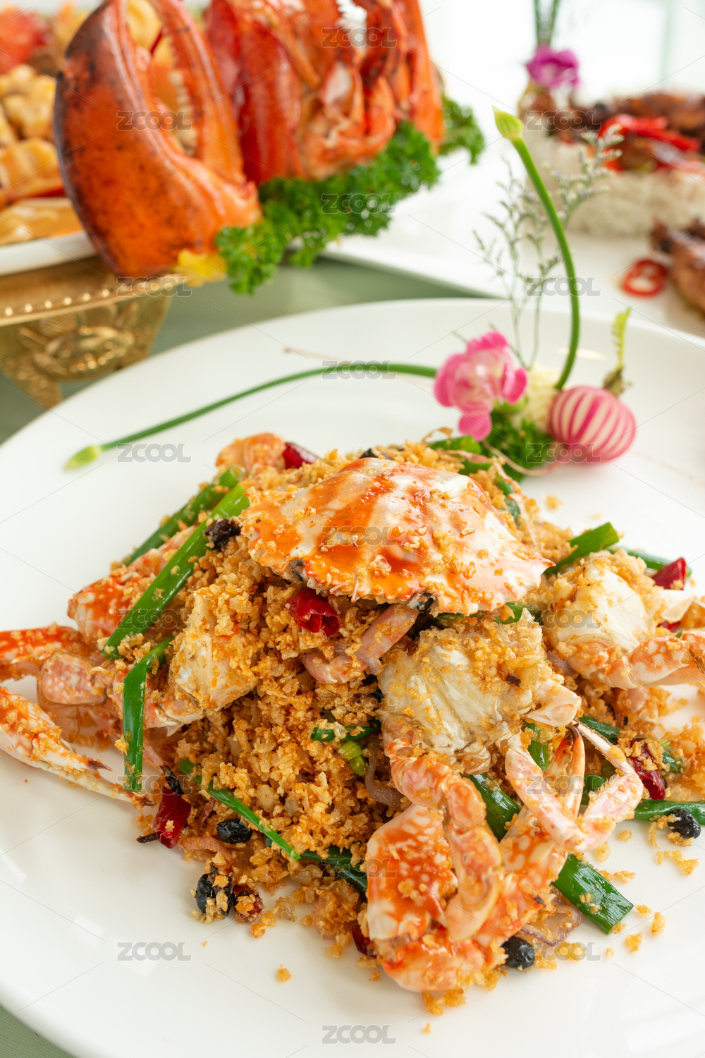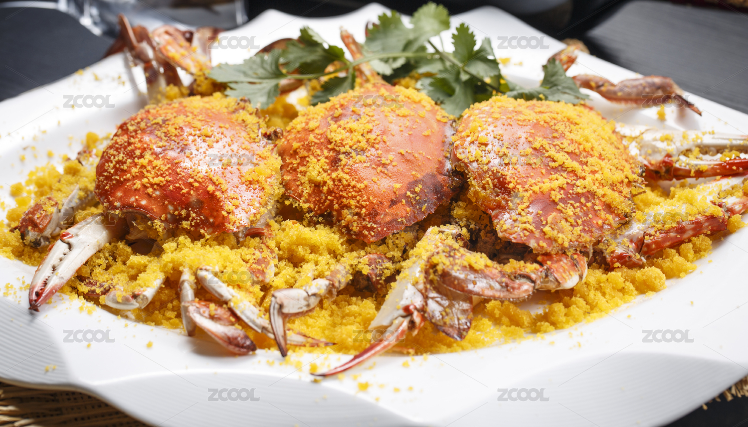 粵式美食避風(fēng)塘炒花蟹擺盤展示