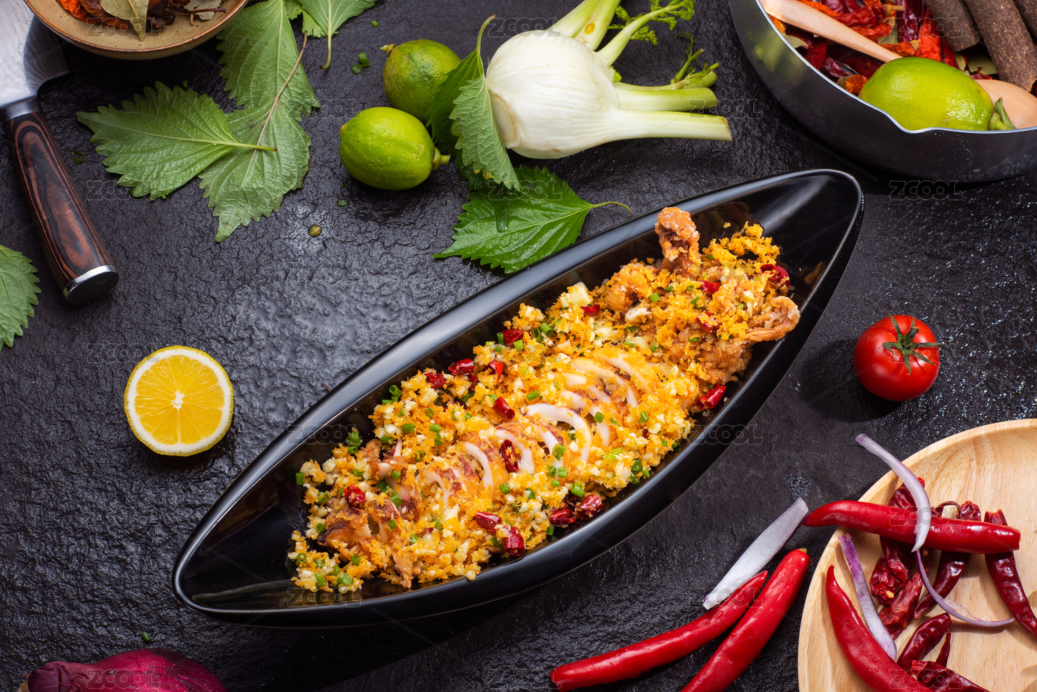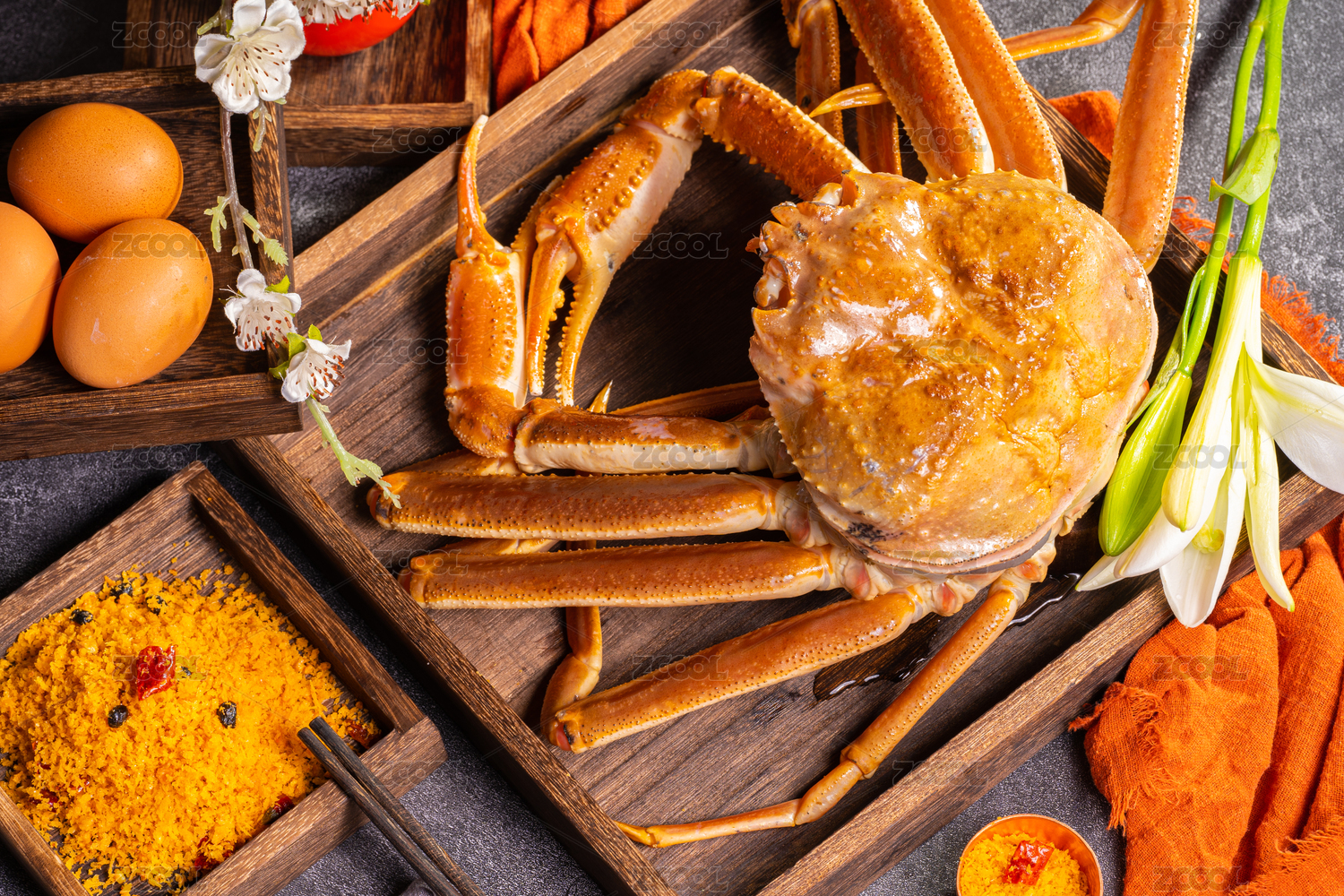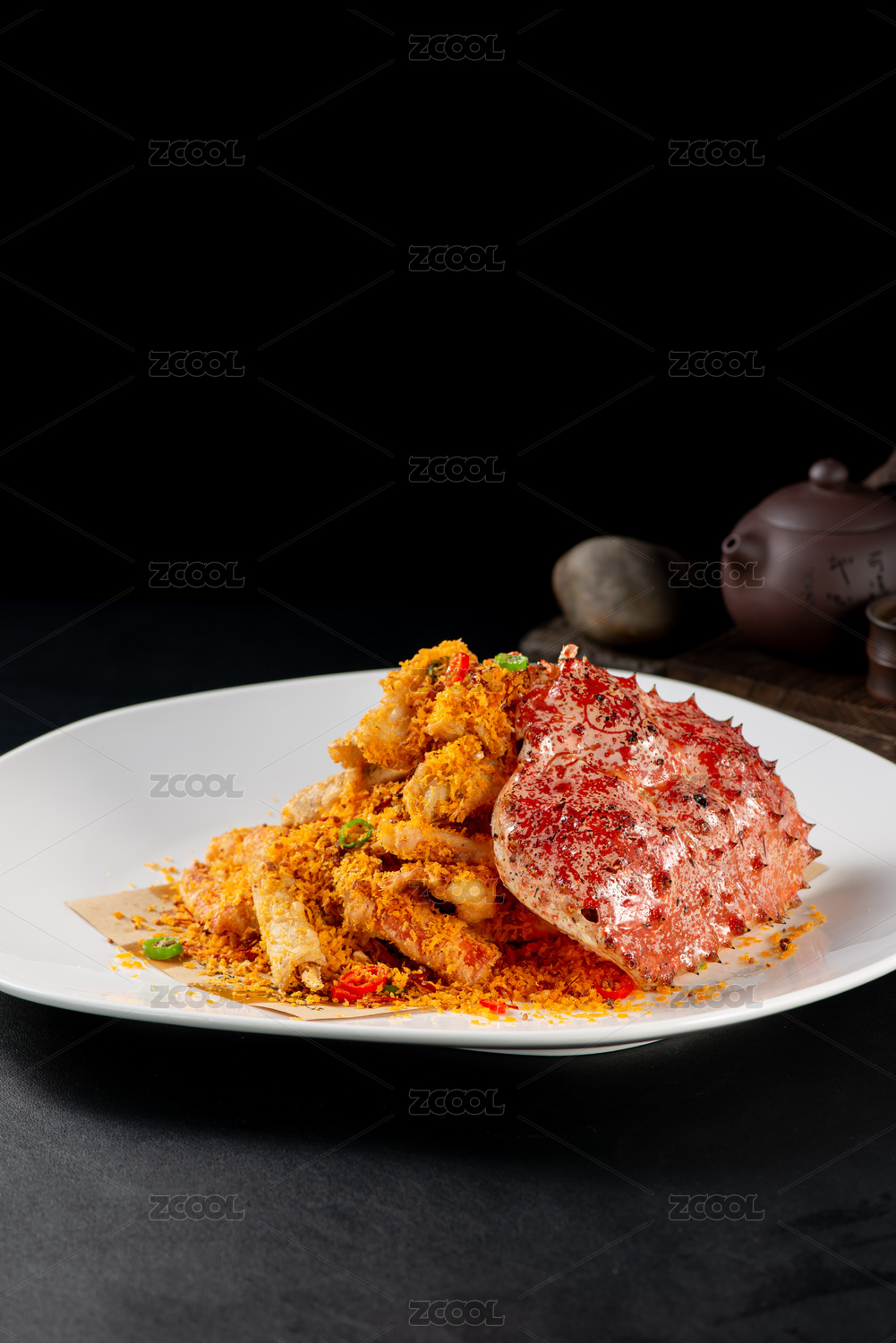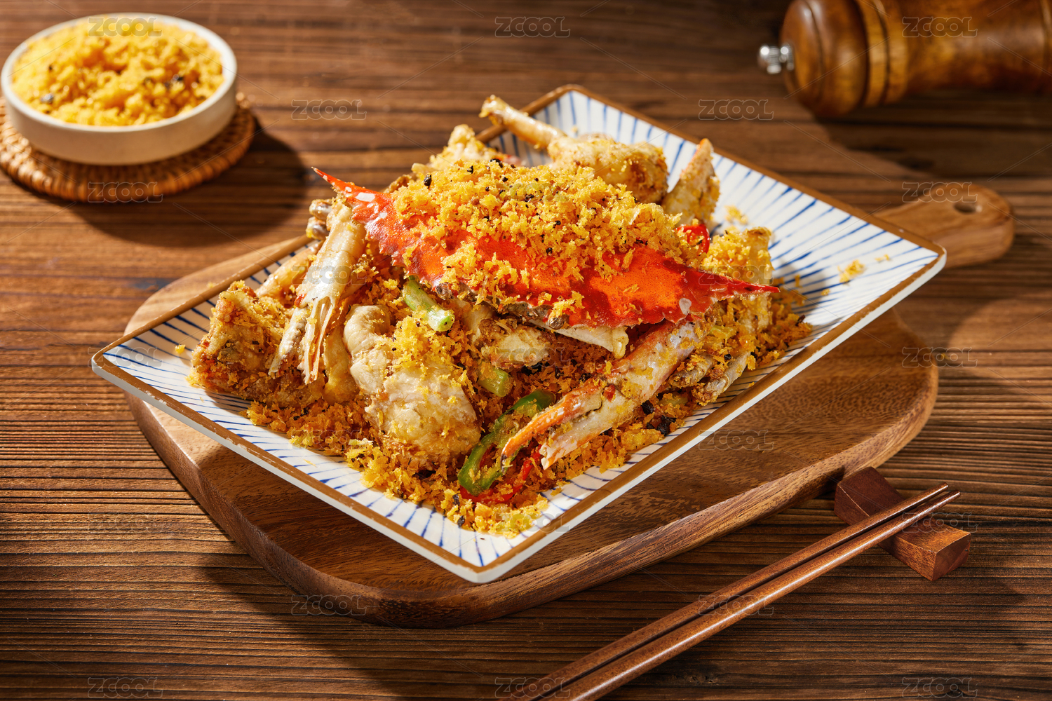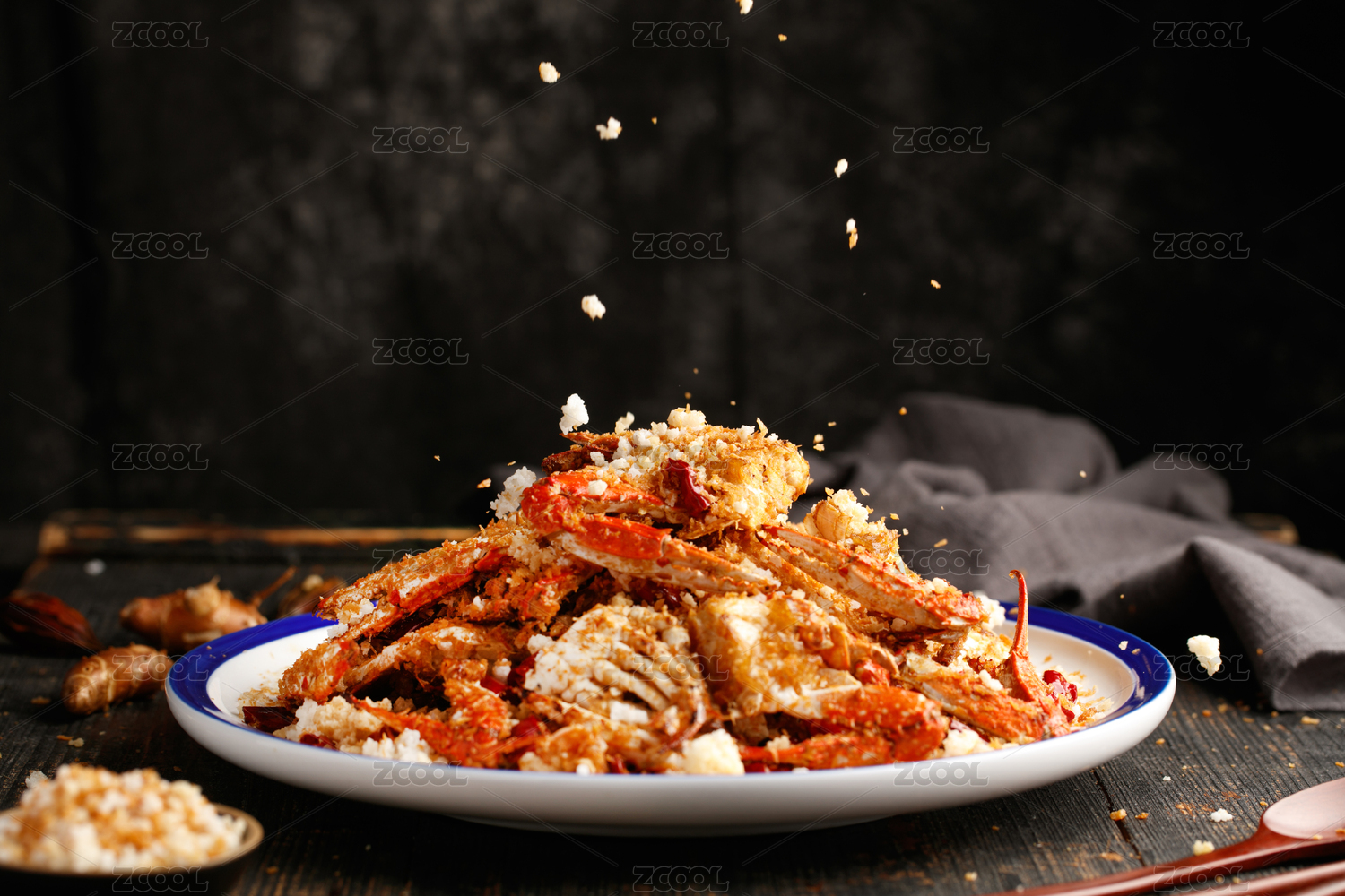 粵式美食避風(fēng)塘炒花蟹擺盤展示