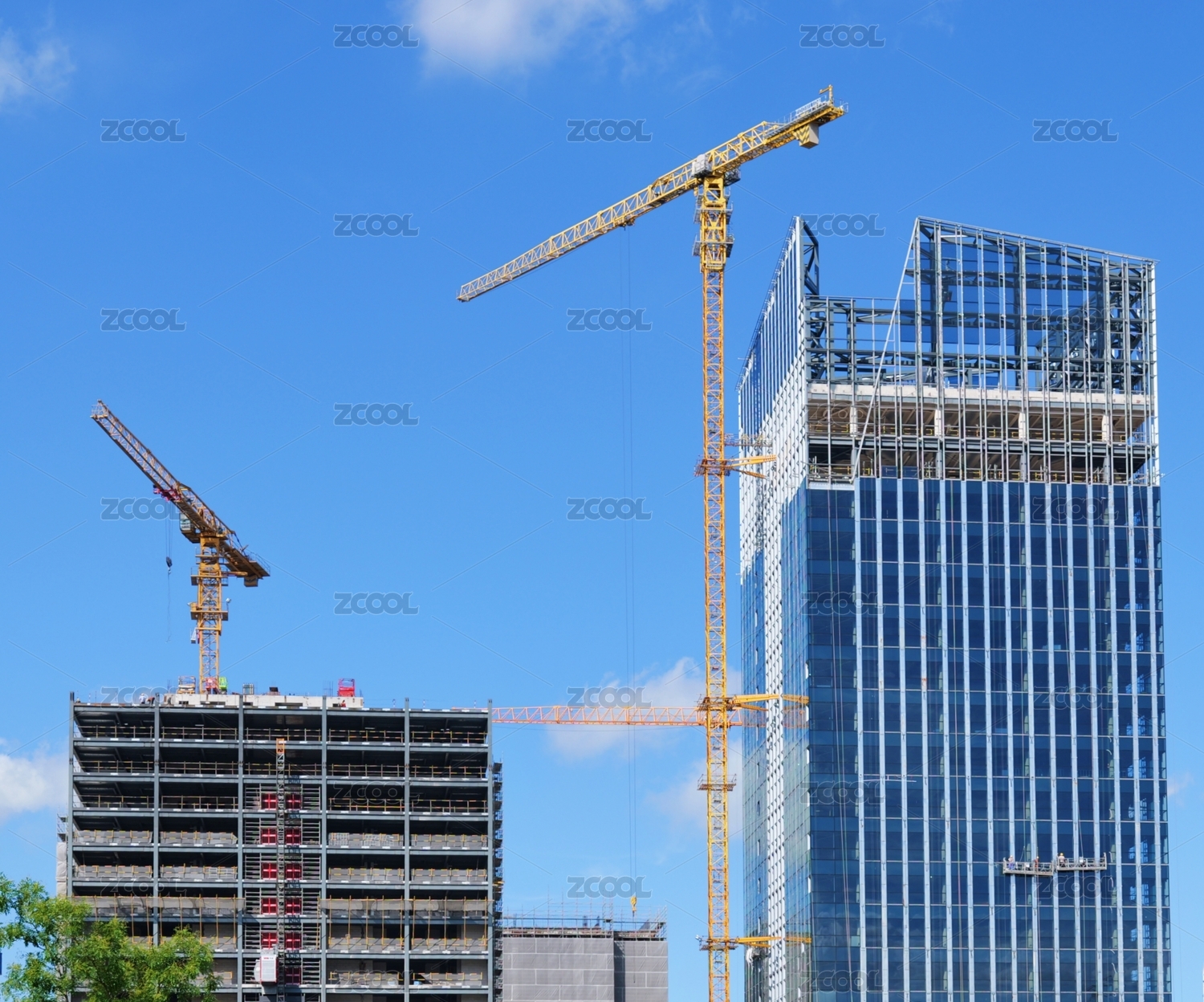 藍(lán)天背景中建設(shè)中的辦公大樓